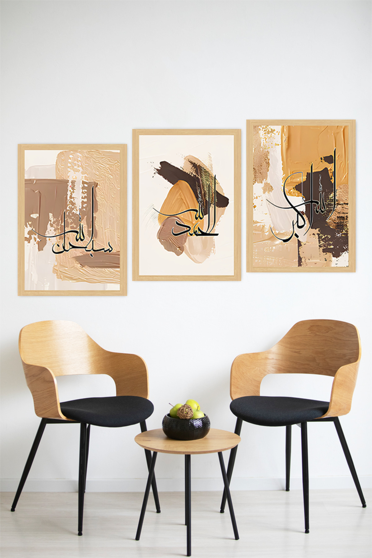 ✨ Allahu Ekber - Elhamdülillah - Sübhanallah Yazılı 3'lü Çerçeve Görünümlü Tablo Seti🌟 CRVS1090