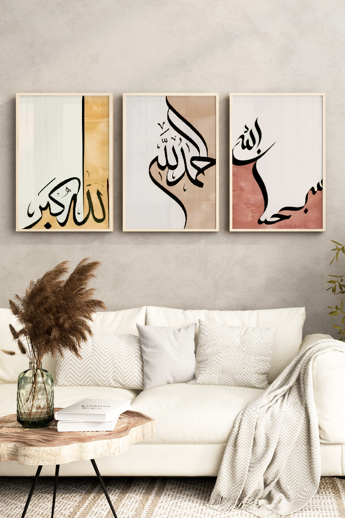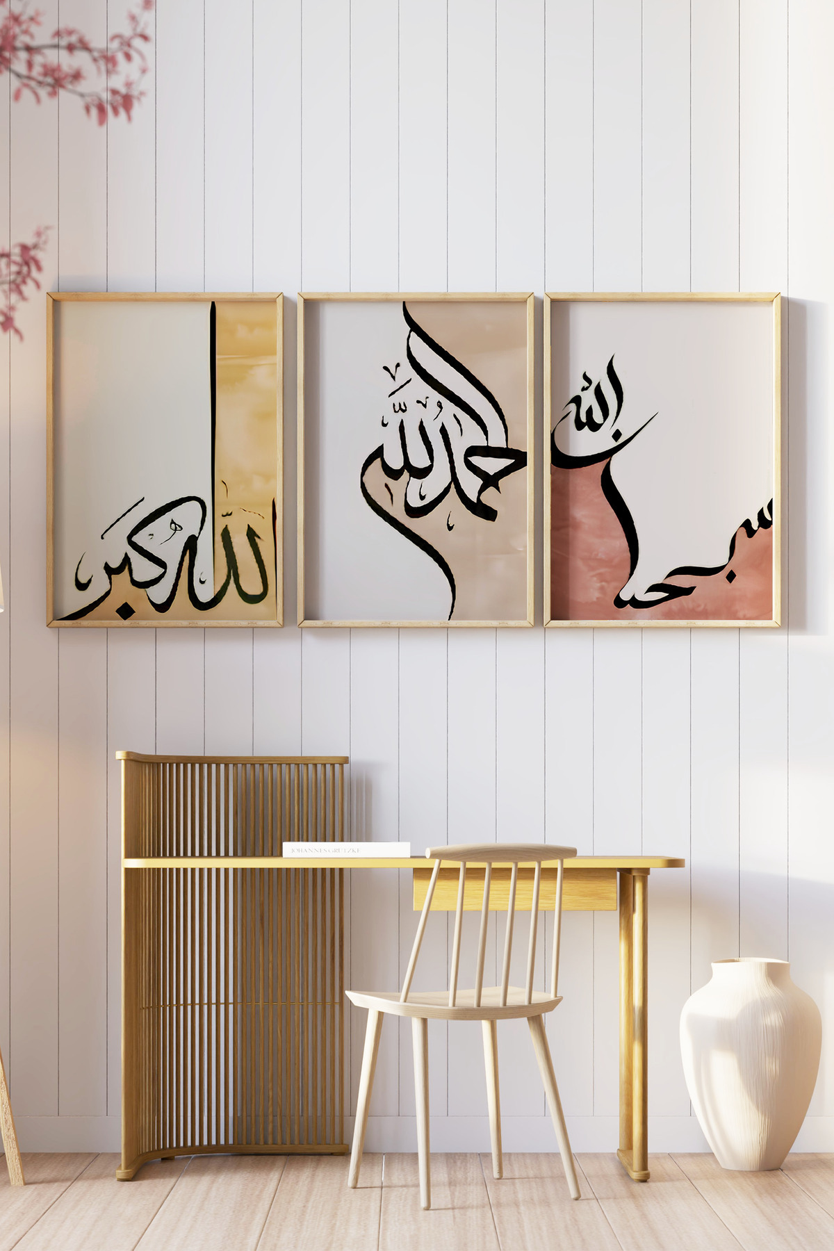 🖋️ Allahu Ekber – Elhamdülillah – Sübhanallah Yazılı Modern Hat Sanatı 3’lü Tablo Seti 🖋️ CRV1074