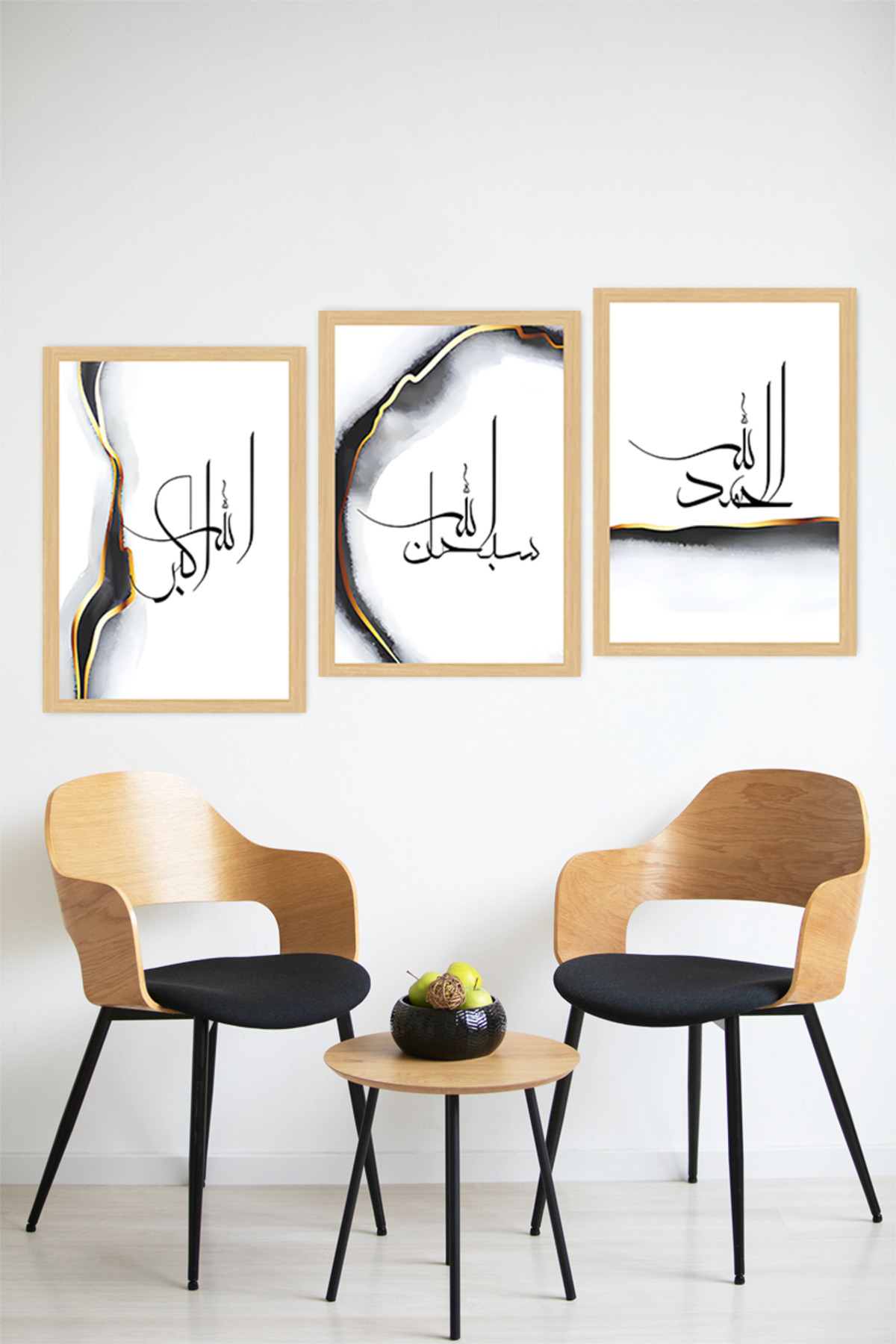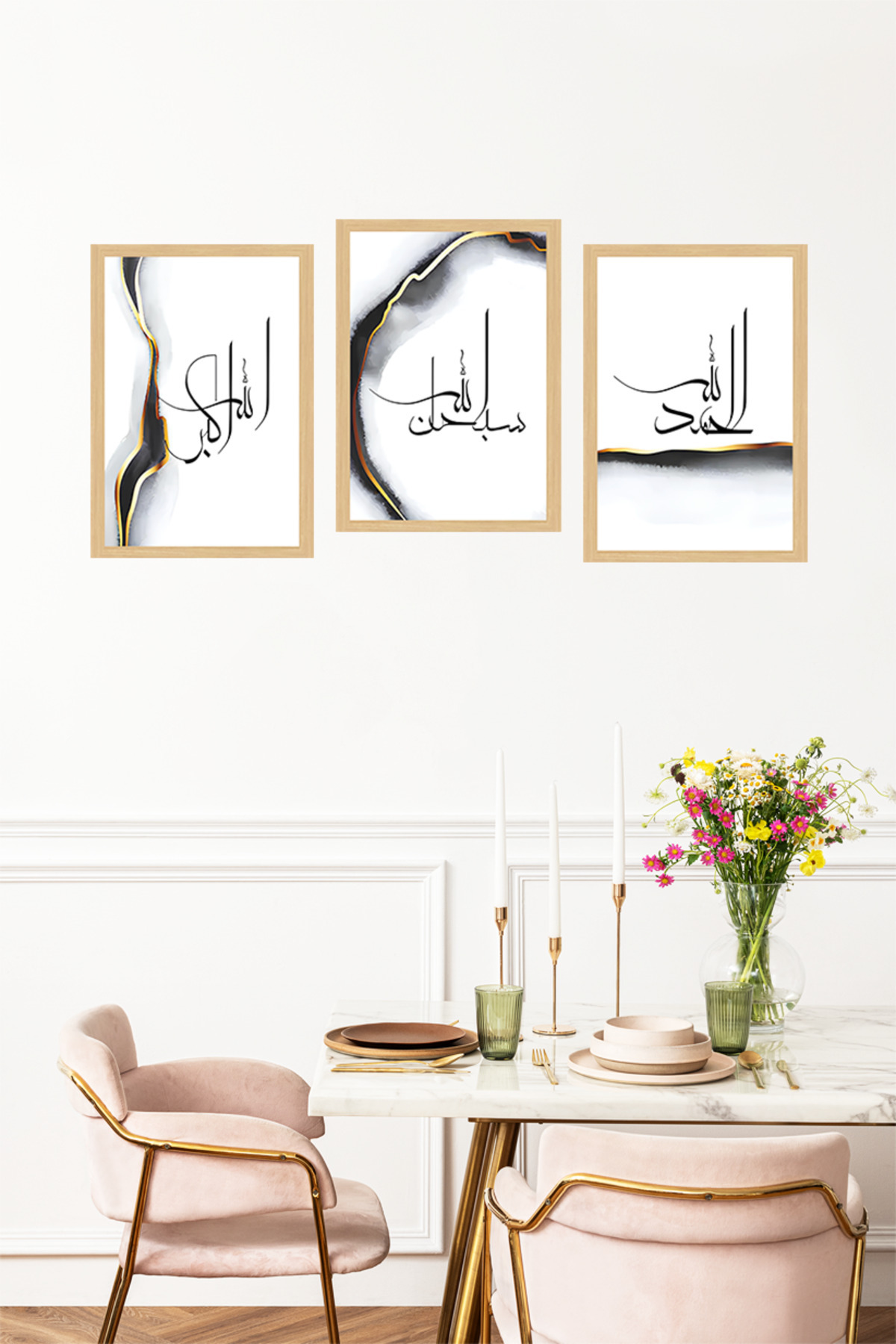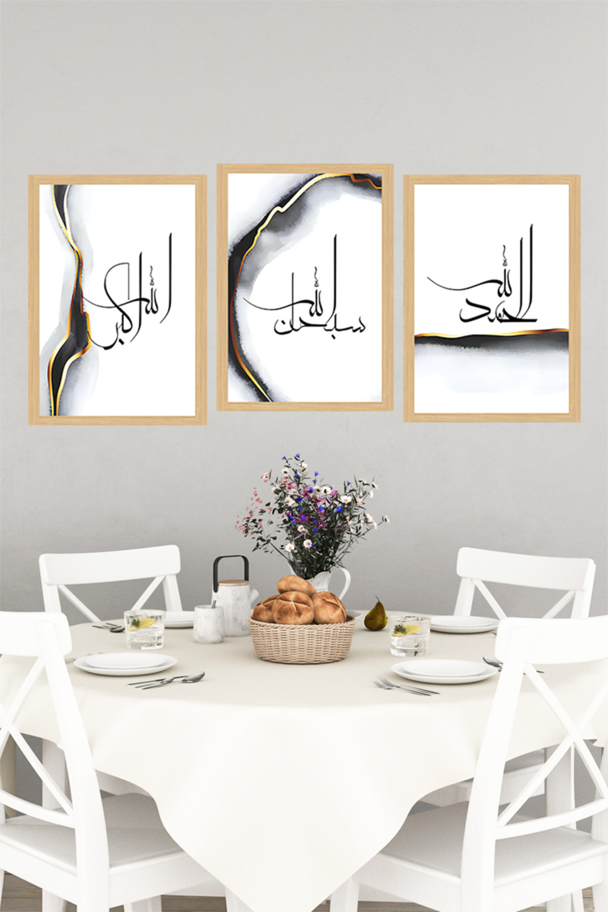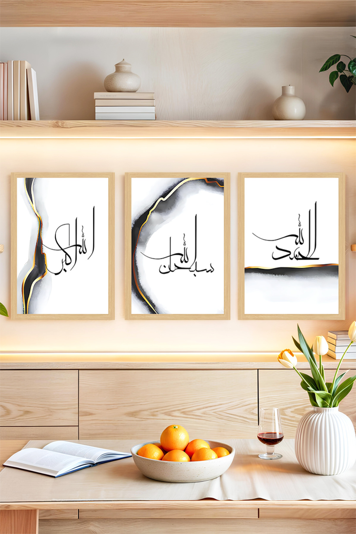 🖼️ AllahuEkber - Subhanallah - Elhamdulillah 3’lü Çerçeve Görünümlü Tablo Seti🌟 CRVS1091