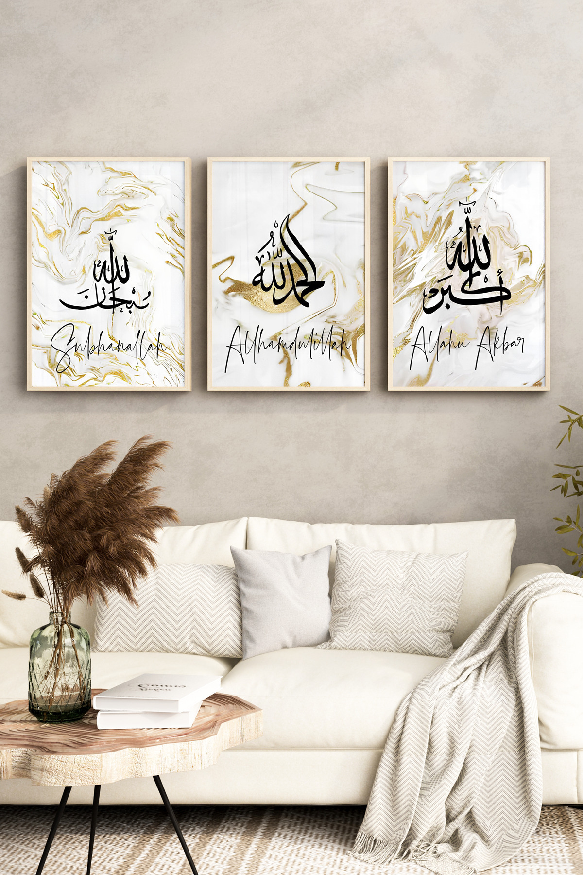 🖼️ Altın Detaylı Çerçeveli İslami Tablo Seti – Şık, Zarif ve Anlamlı! 🕌✨🌸 CRV1226
