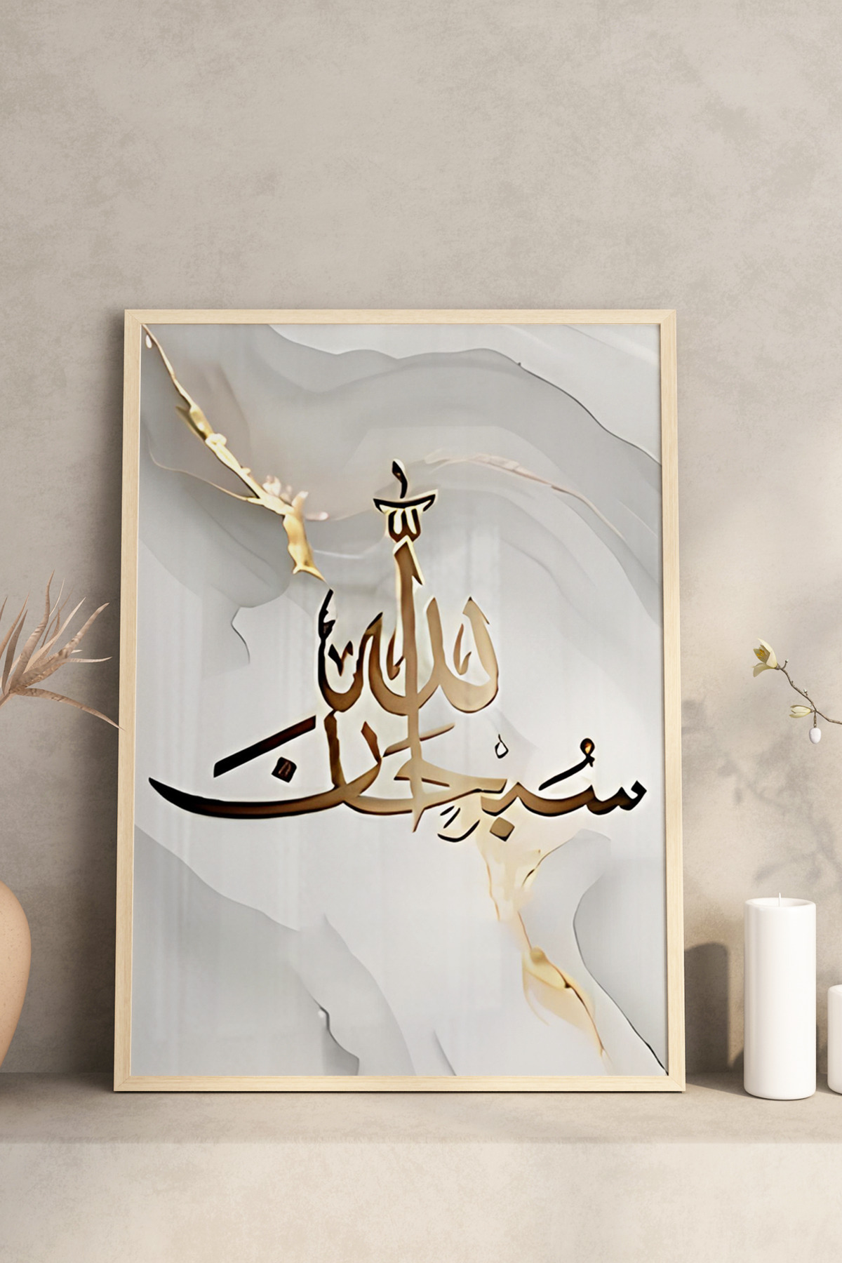 🖼️ Altın Yaldızlı 3'lü Çerçeveli Tablo Seti–Subhanallah,Elhamdulillah,Allahu Ekber 🌸 CRV1224