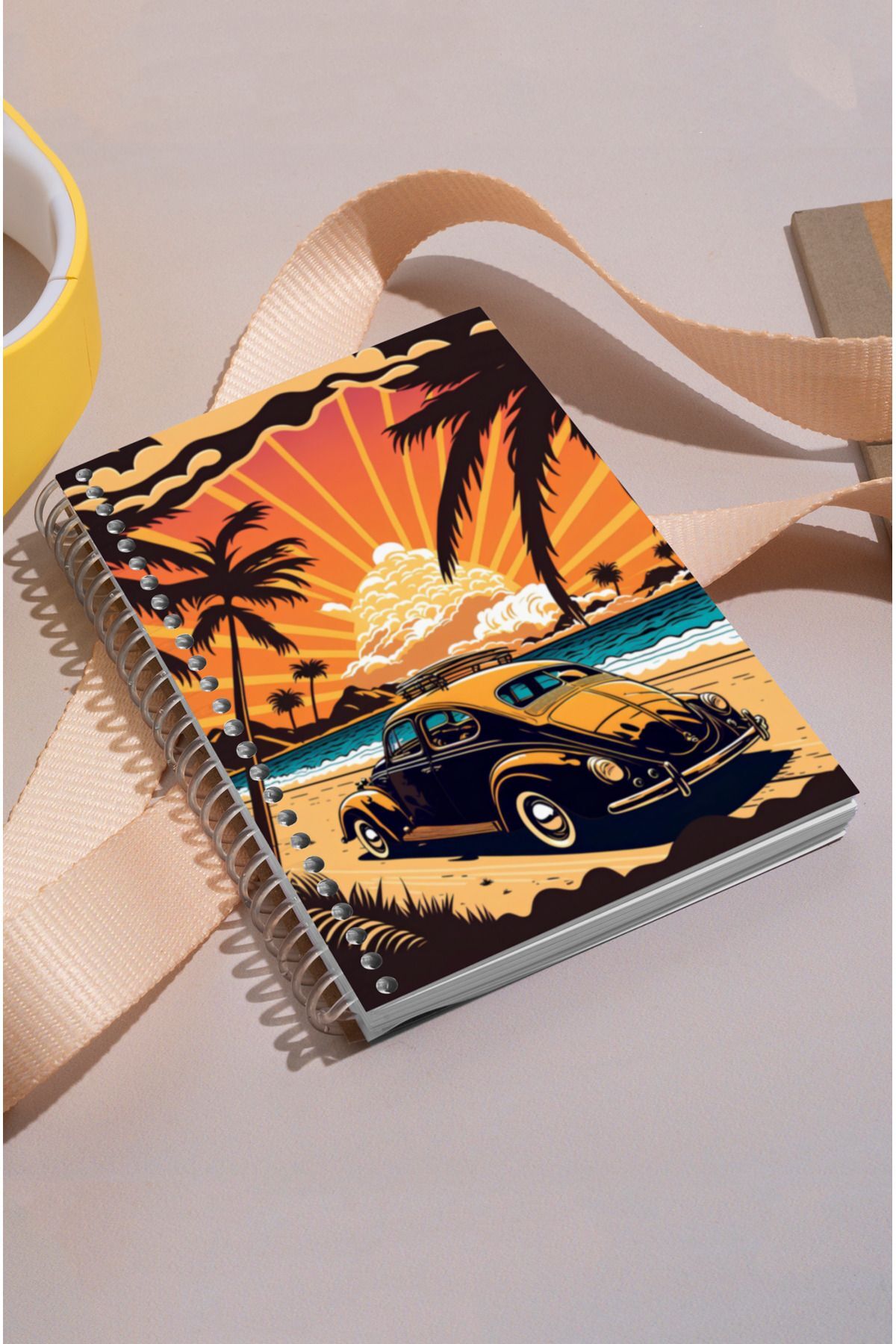 Araba Desen Ahşap Mdf Kapaklı 100 Yaprak Çizgili 14x21 Vip Modelist Defter 80gr/m2 Ç520