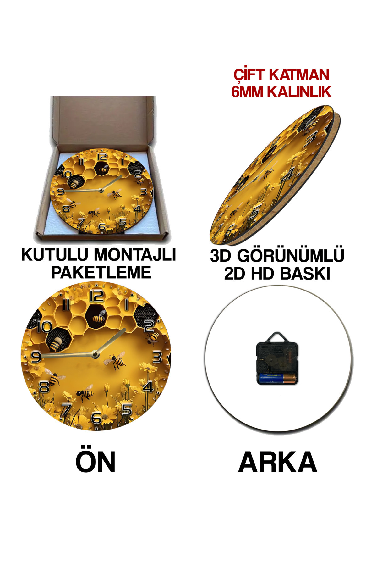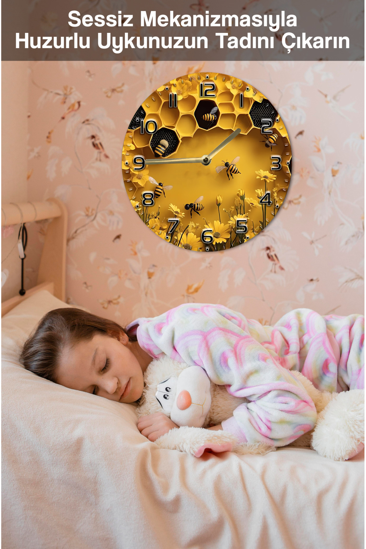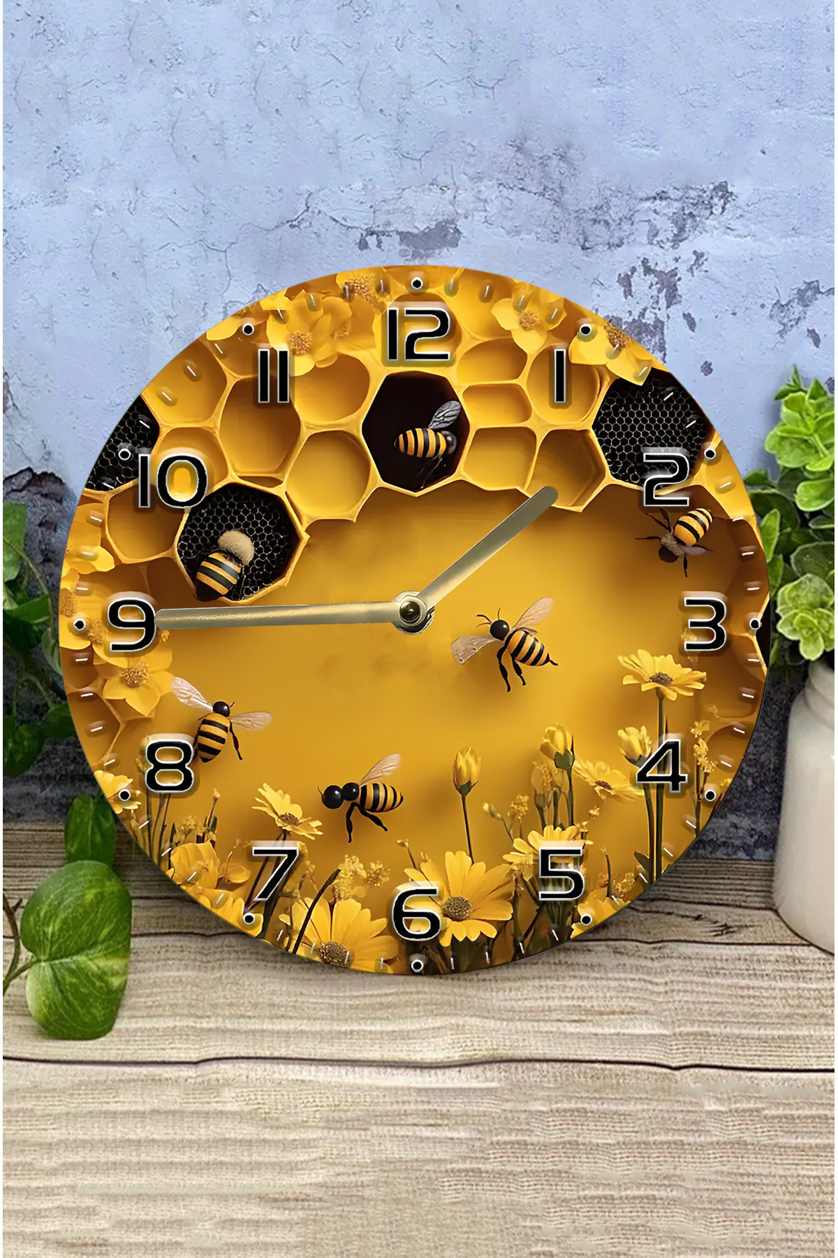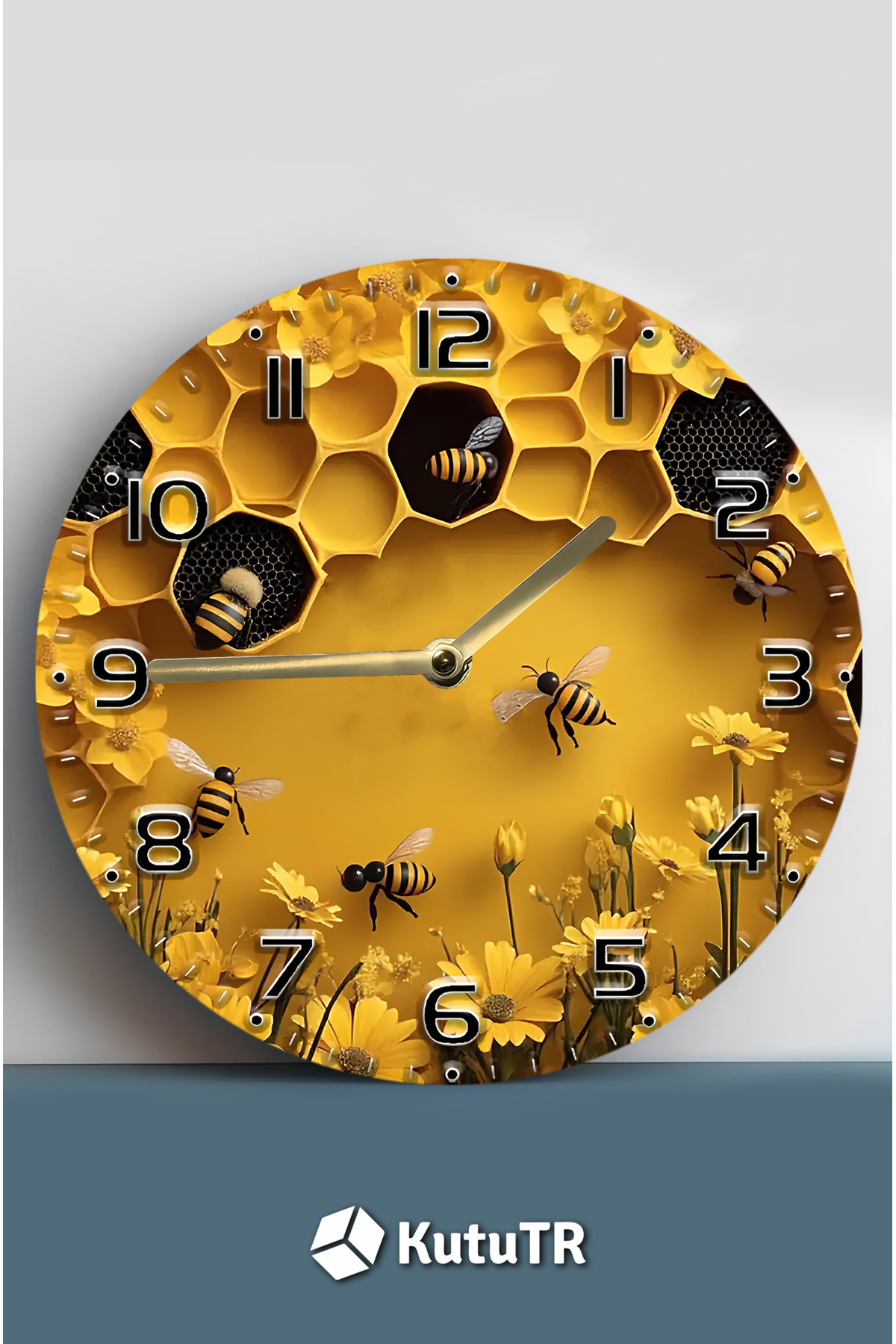🐝 Arı ve Petek Temalı MDF Duvar Saati – 33 cm | 3D Görünümlü UV Baskılı SDW346