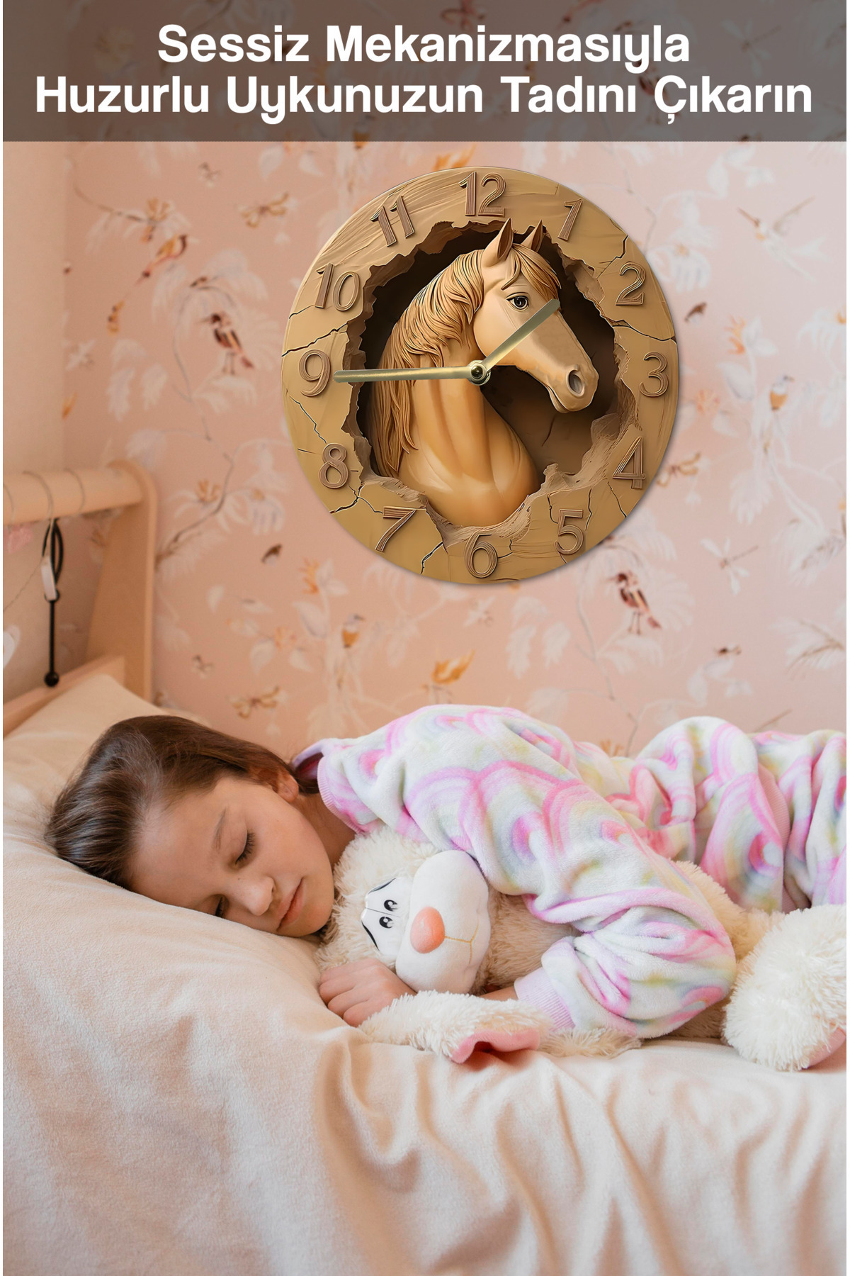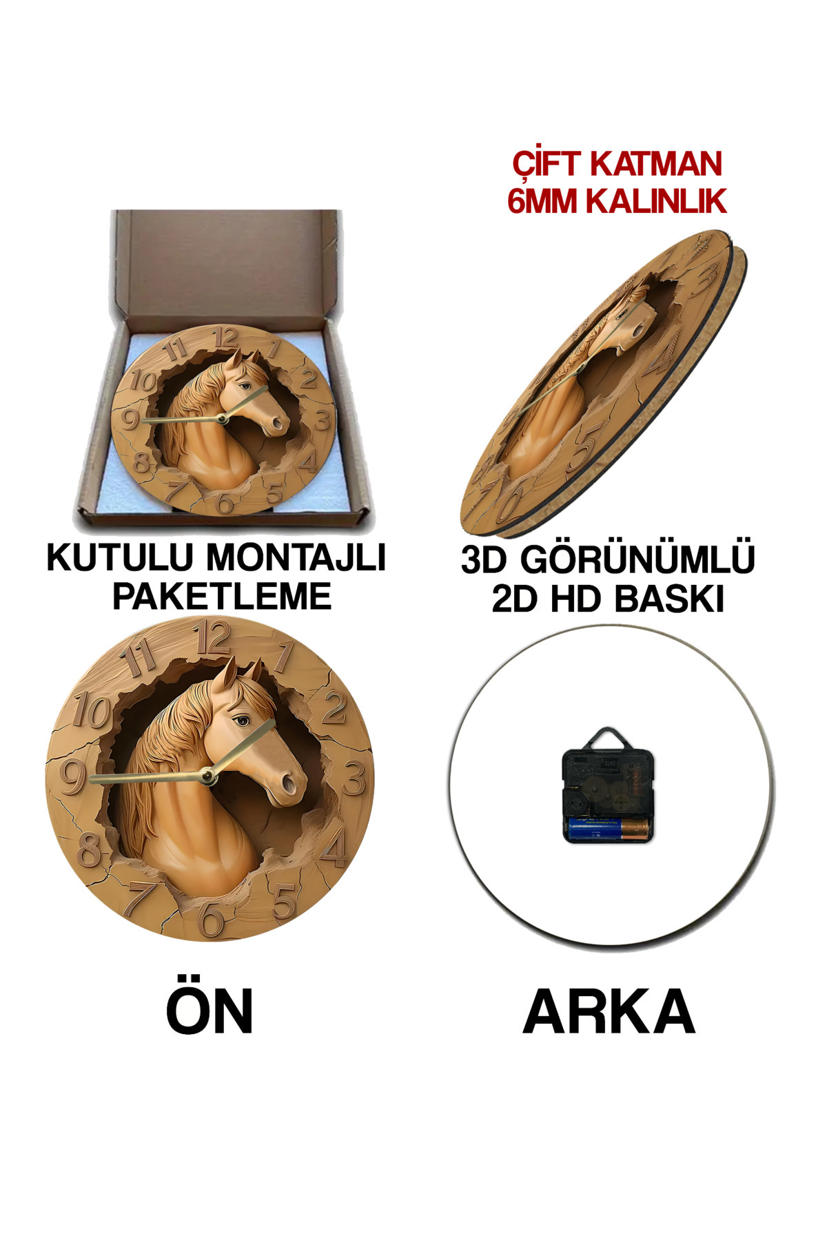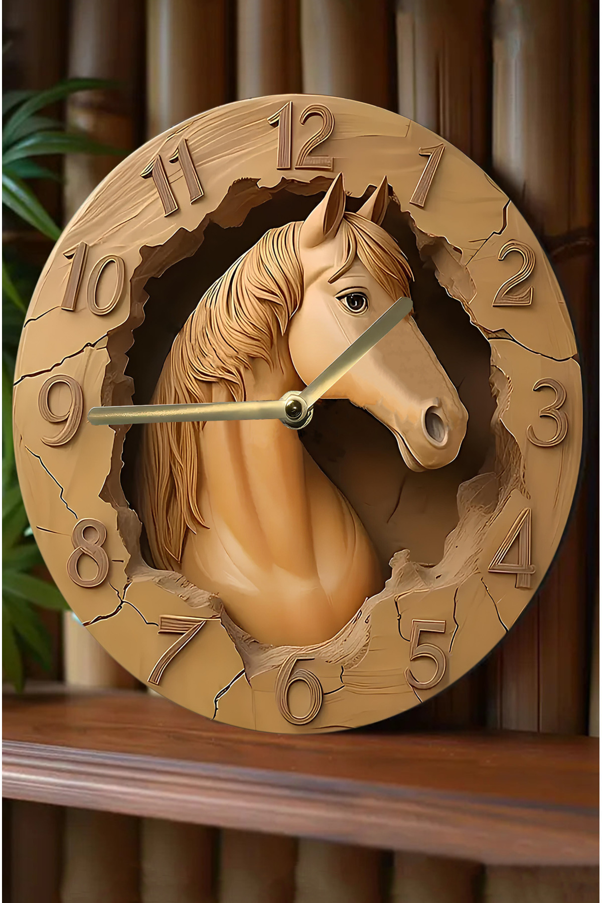 🐎 At Figürlü 3D Görünümlü MDF Duvar Saati - 33 cm | Dekoratif ve Şık Tasarım sdw320