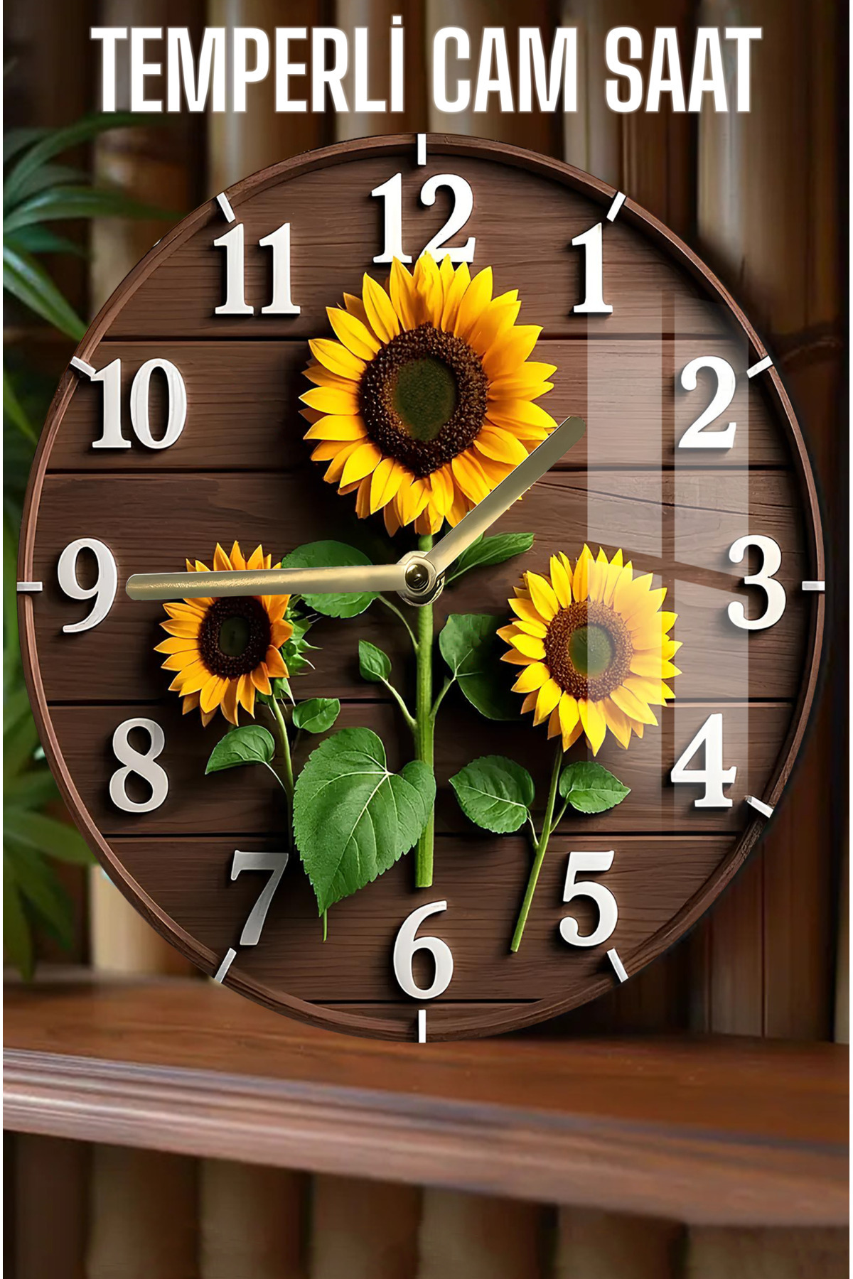 Ayçiçek Temalı 3D Görünümlü Temperli Cam Saat – 33 cm CSDW048