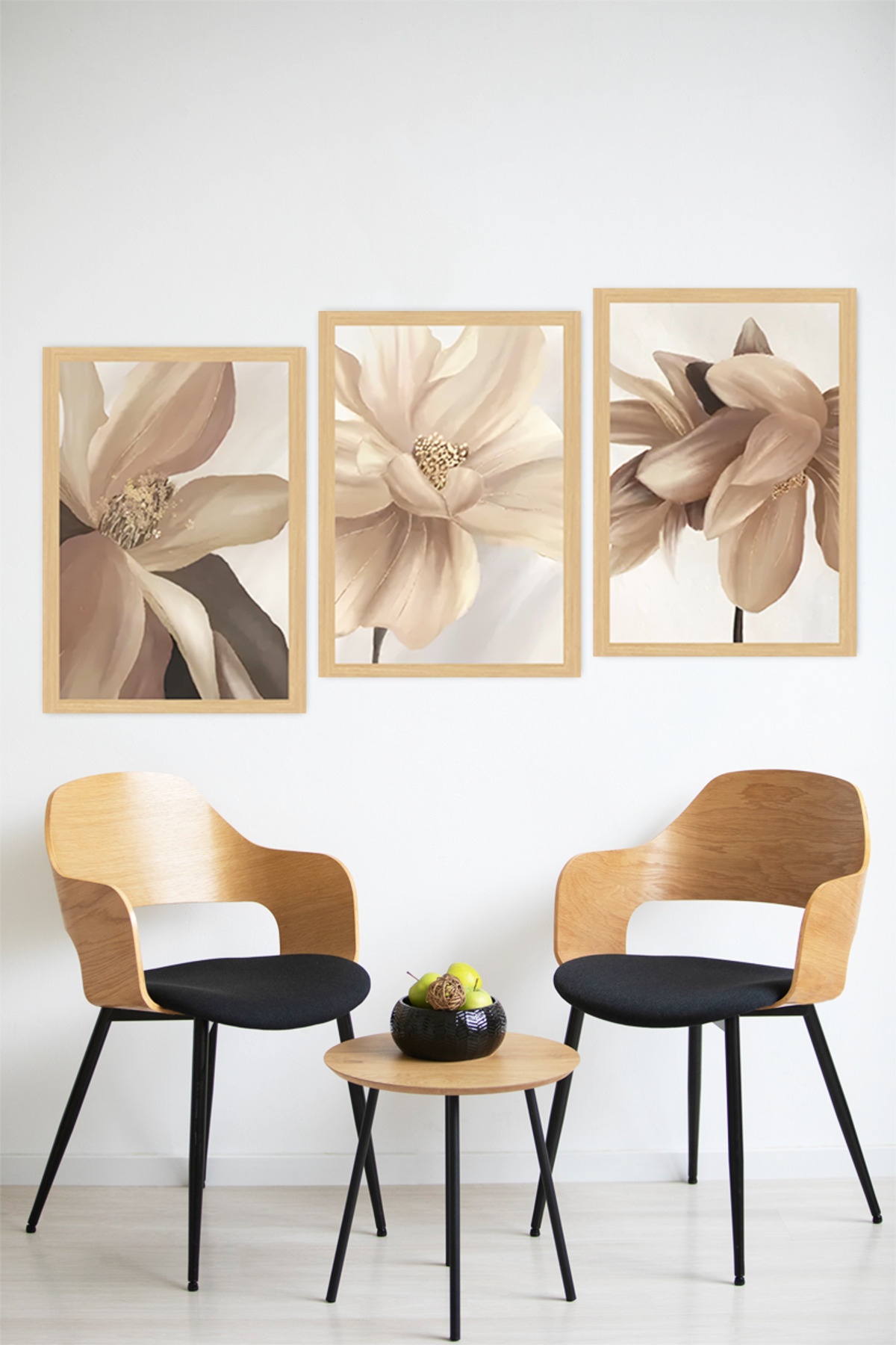 🌸 Bej Tonlarında Zarif Çiçek Temalı 3'lü Çerçeve Görünümlü Tablo Seti🌟 CRVS1122