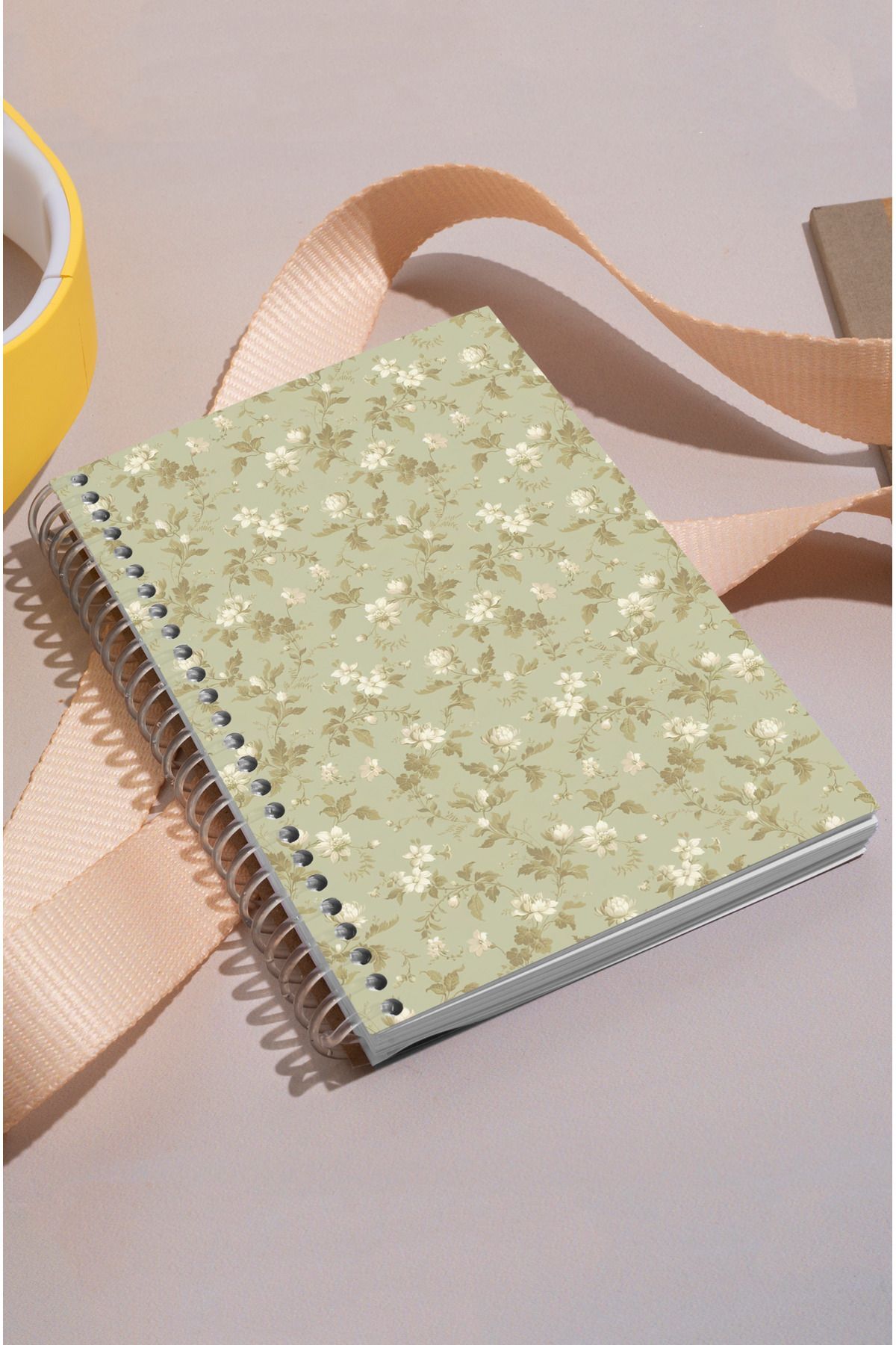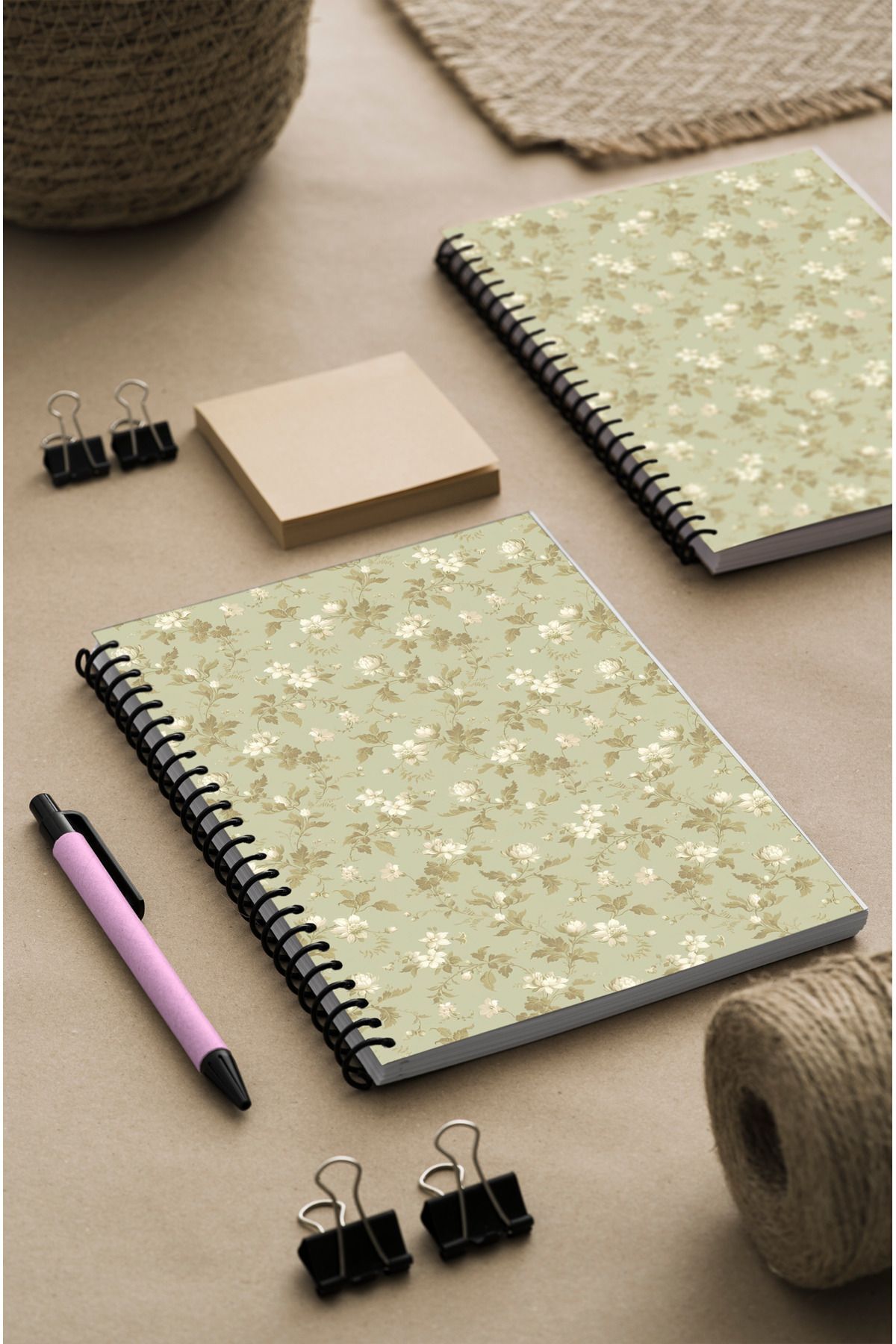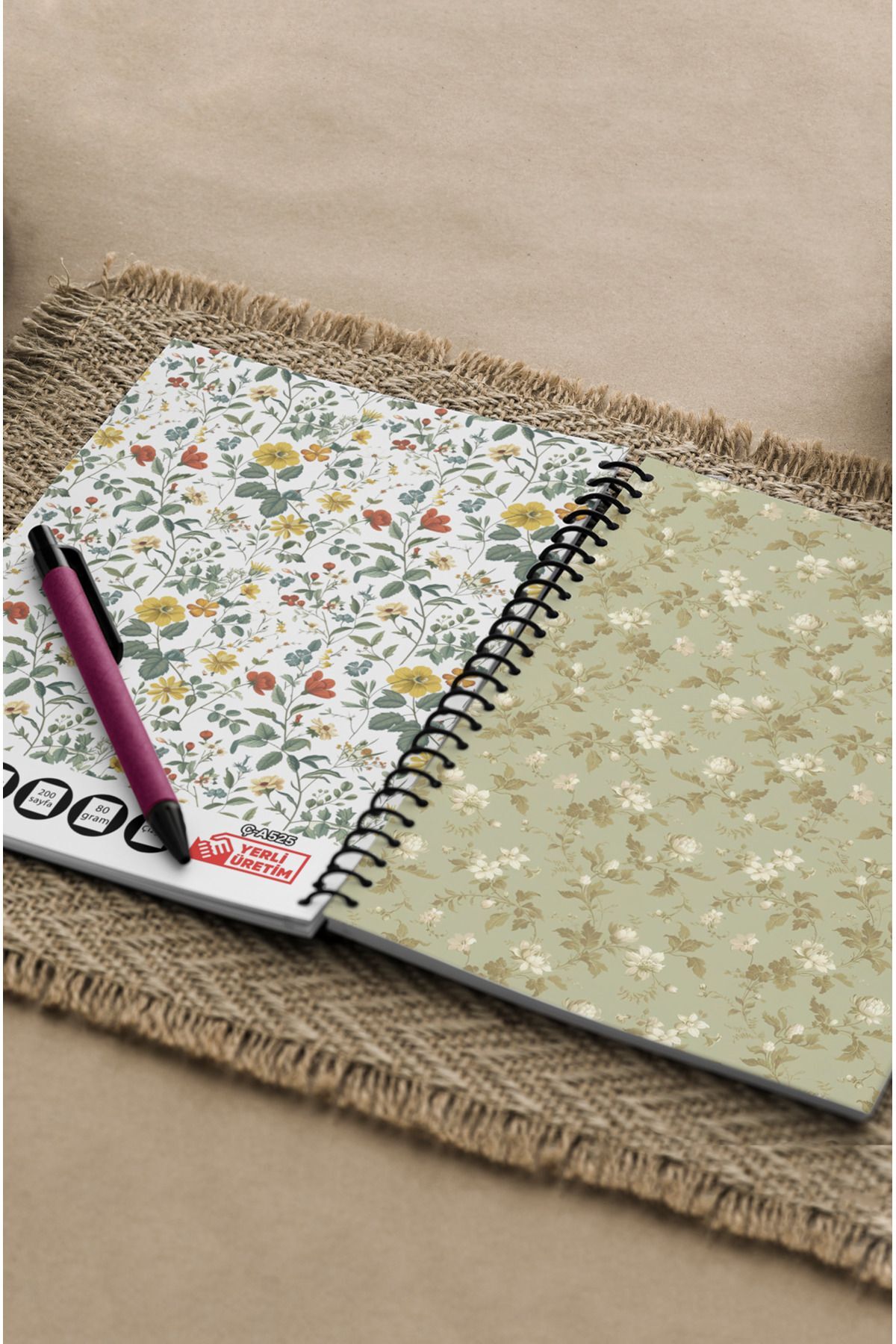 Beyaz Çiçek Yeşil Desen Ahşap Mdf Kapaklı Modelist 100 Yaprak Kareli 15x21 Vip Defter 80gr/m2 K525