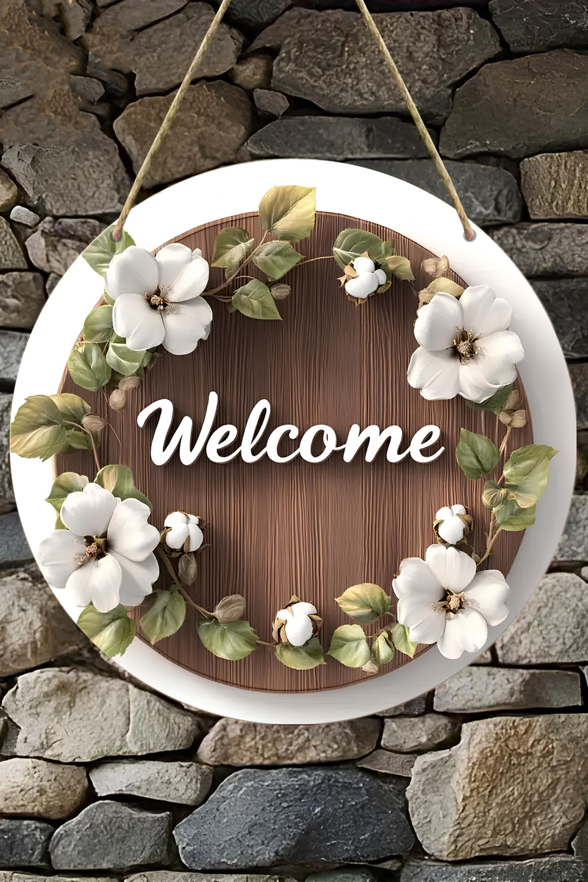 🪵 Beyaz Çiçekli Hoşgeldiniz Yazılı MDF Kapı Süsü (20 cm) KS008