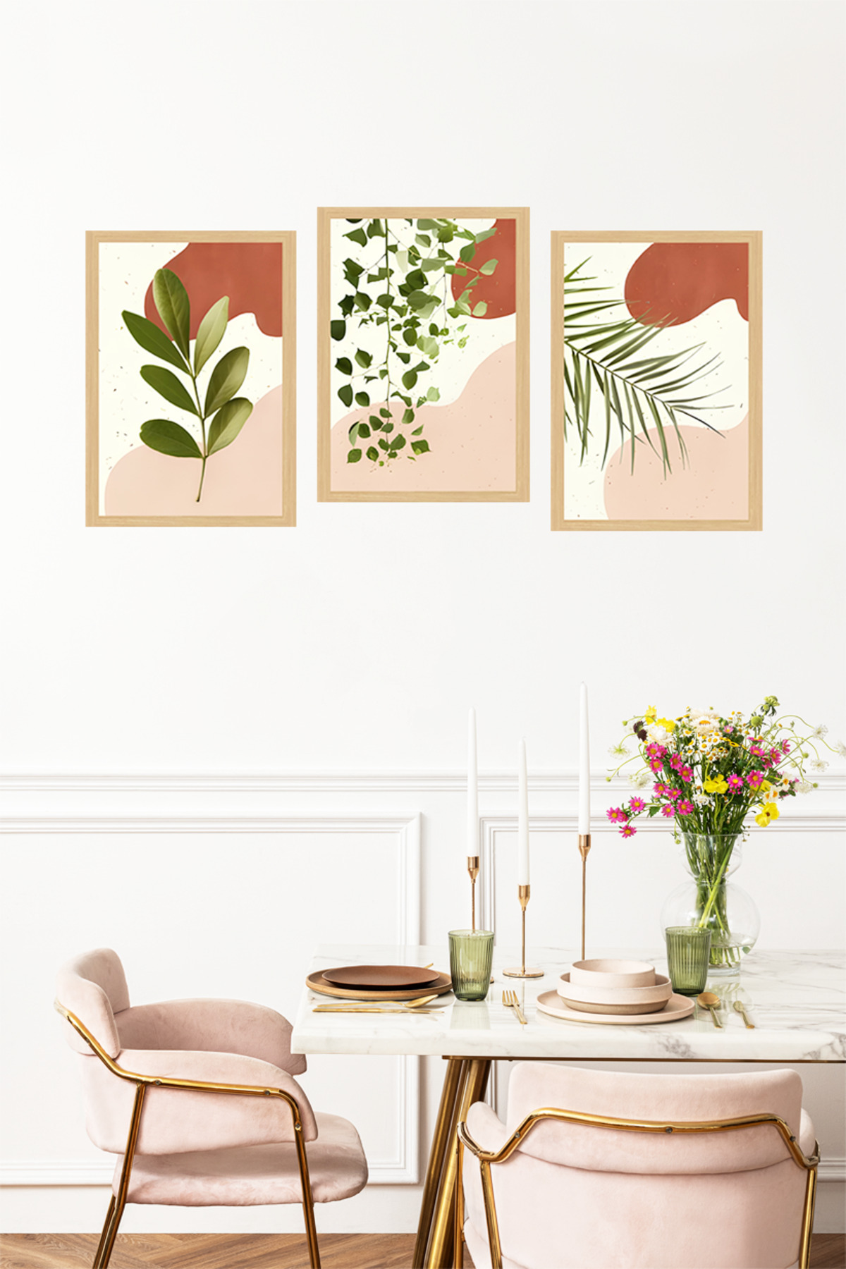 🌿 Bitki Desenli Modern Minimal 3’lü Çerçeve Görünümlü Tablo Seti 🌿 CRVS1129