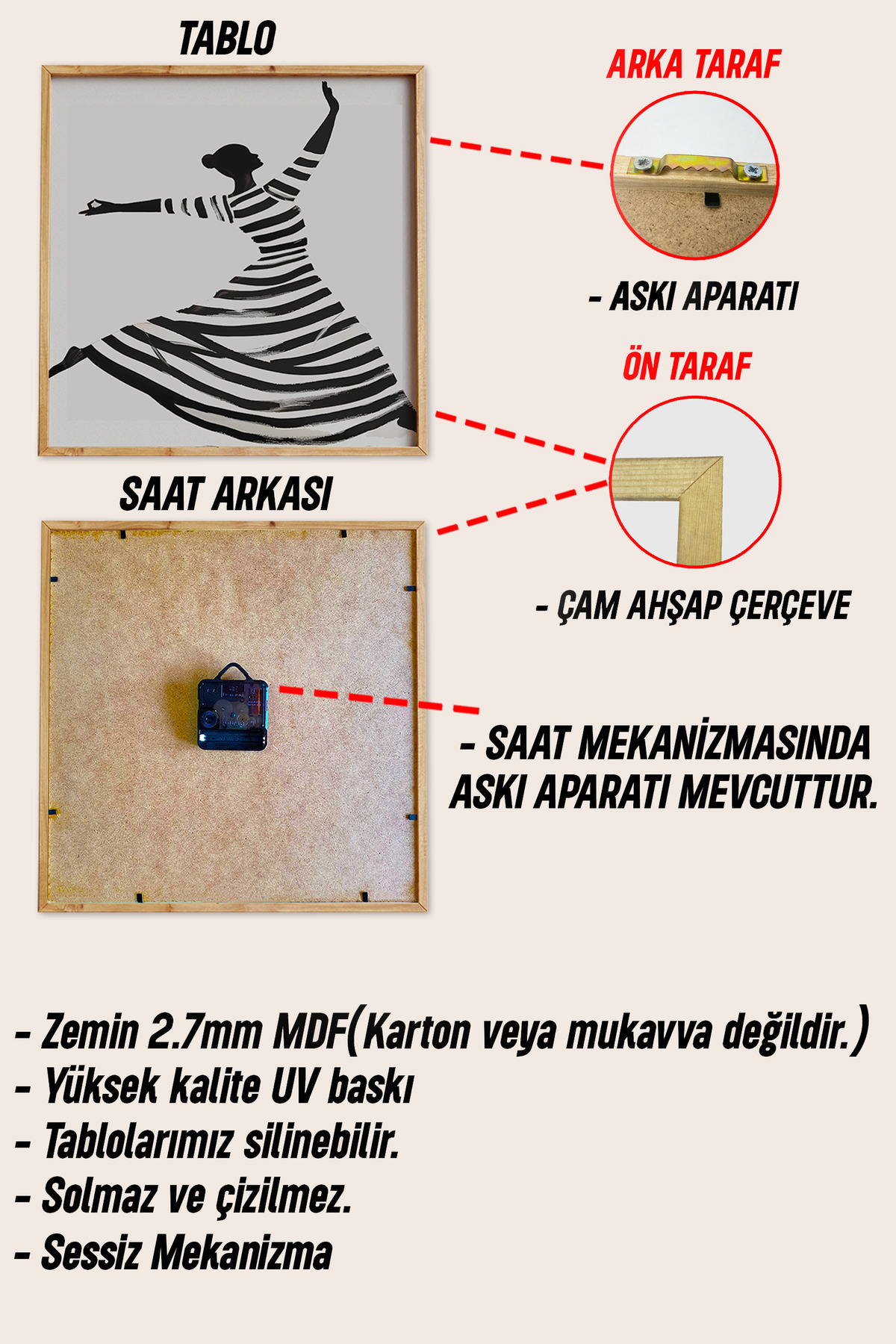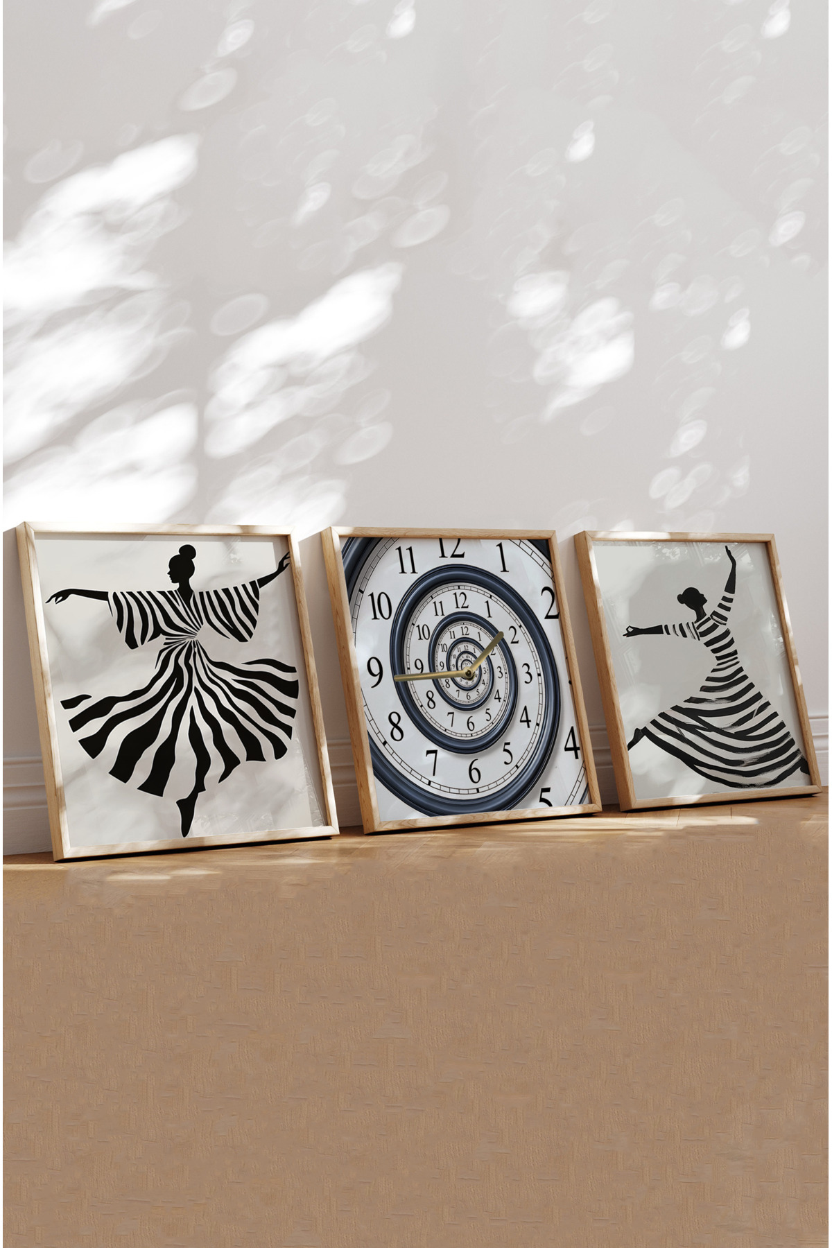 Bohem Tarz Çizgili Dansçı Saatli Tablo Seti – 3’lü Duvar Dekoru