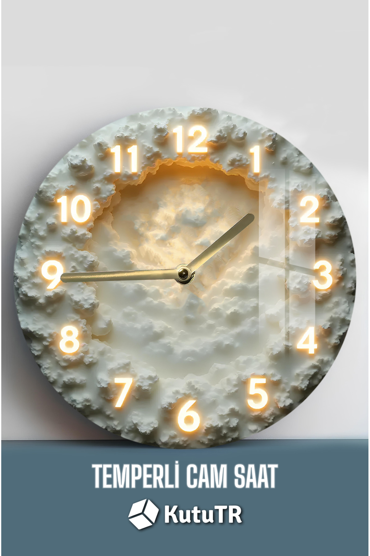 BULUT DESENLİ TEMPERLİ CAM SAAT – 33x33 cm CSDW321