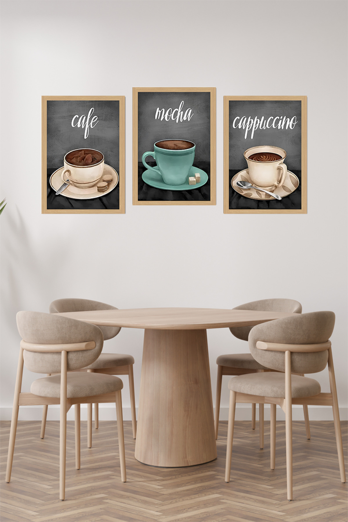 ☕ Cafe Temalı Çerçeve Görünümlü 3'lü Tablo Seti – 13x17, 21x30, 30x40 cm Ebat Seçenekli CRVS1011