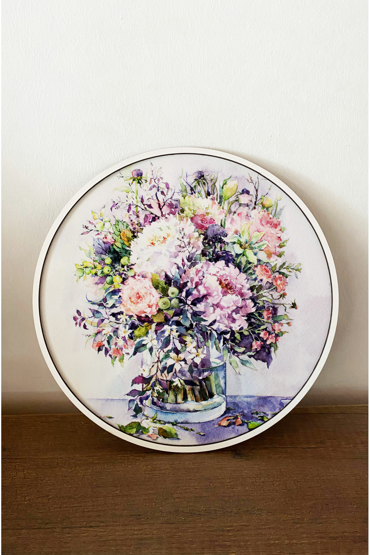 🌸 Çiçek Buketi Desenli Mdf 3’lü Tepsi Seti (24 CM) – Su Bazlı Canlı Renkler Ile Şıklık! 🌸 M6