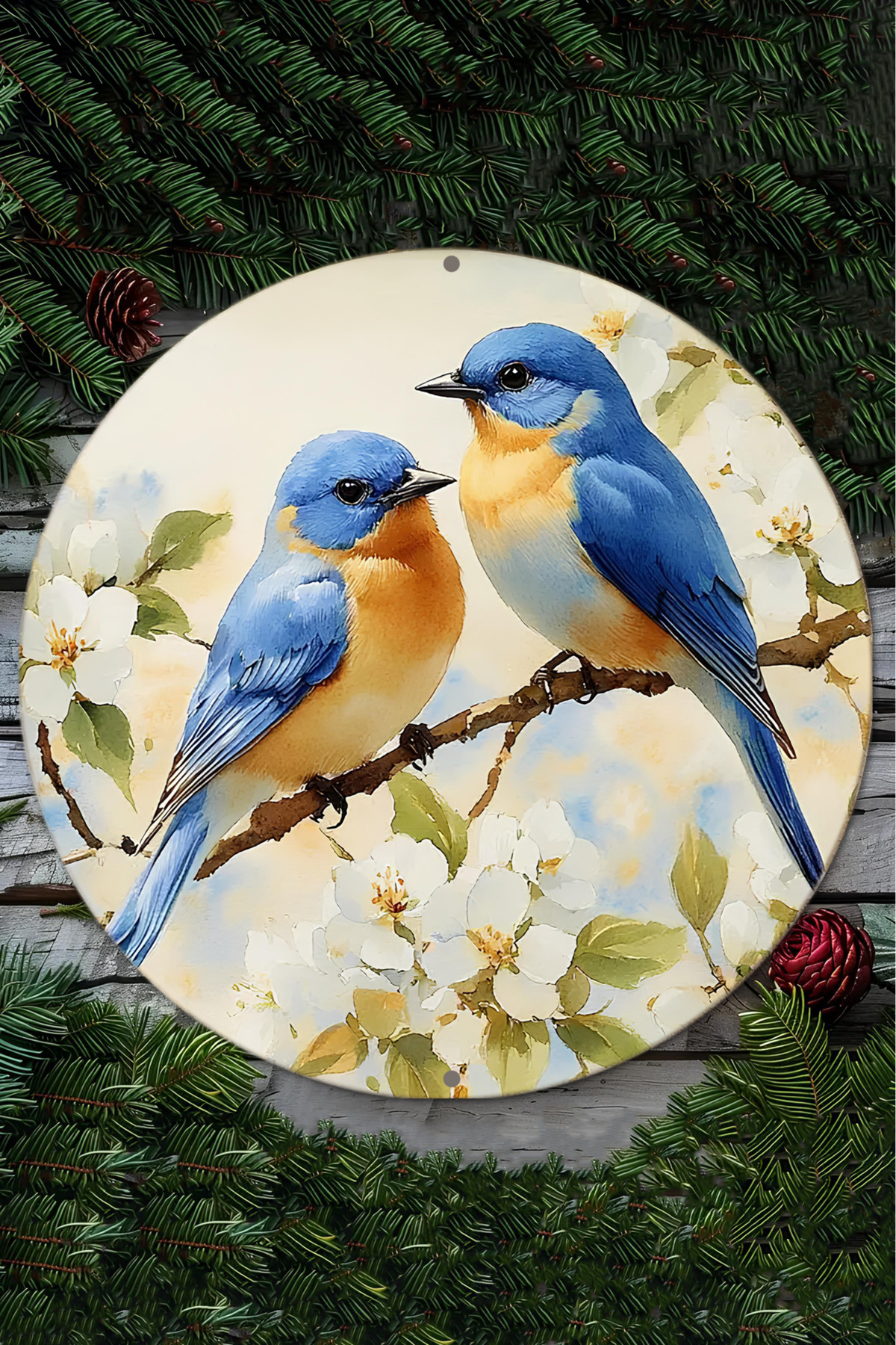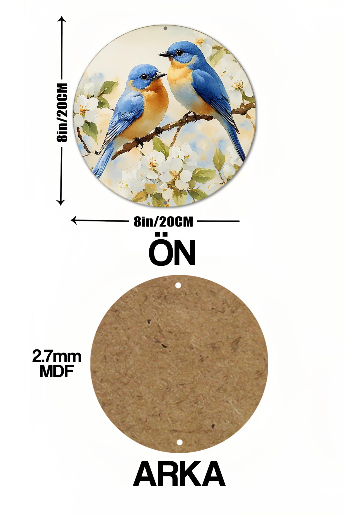 🕊️ Çiçek Dallarında Mavi Kuşlar MDF Duvar Dekoru – 20 cm DT019