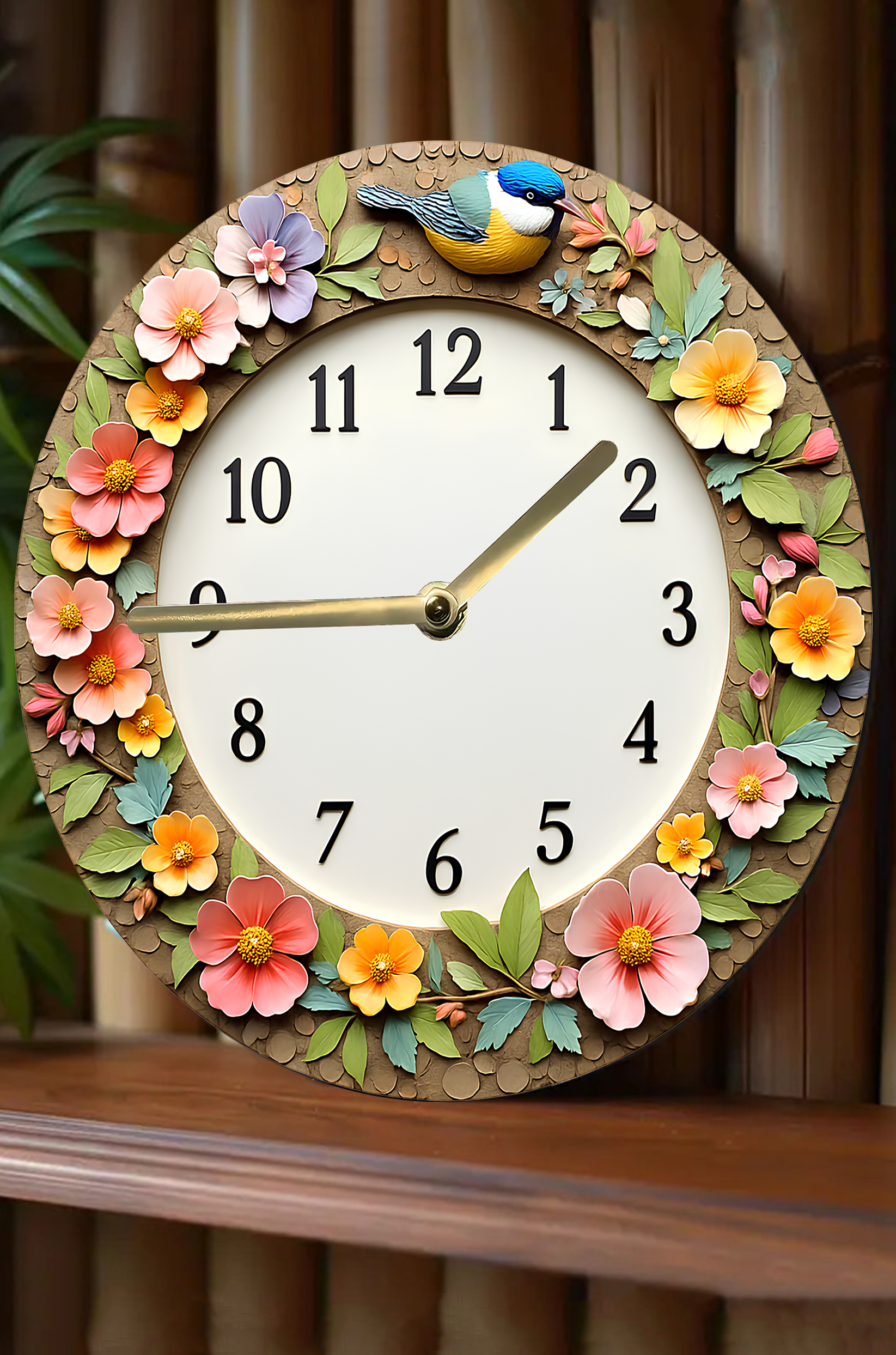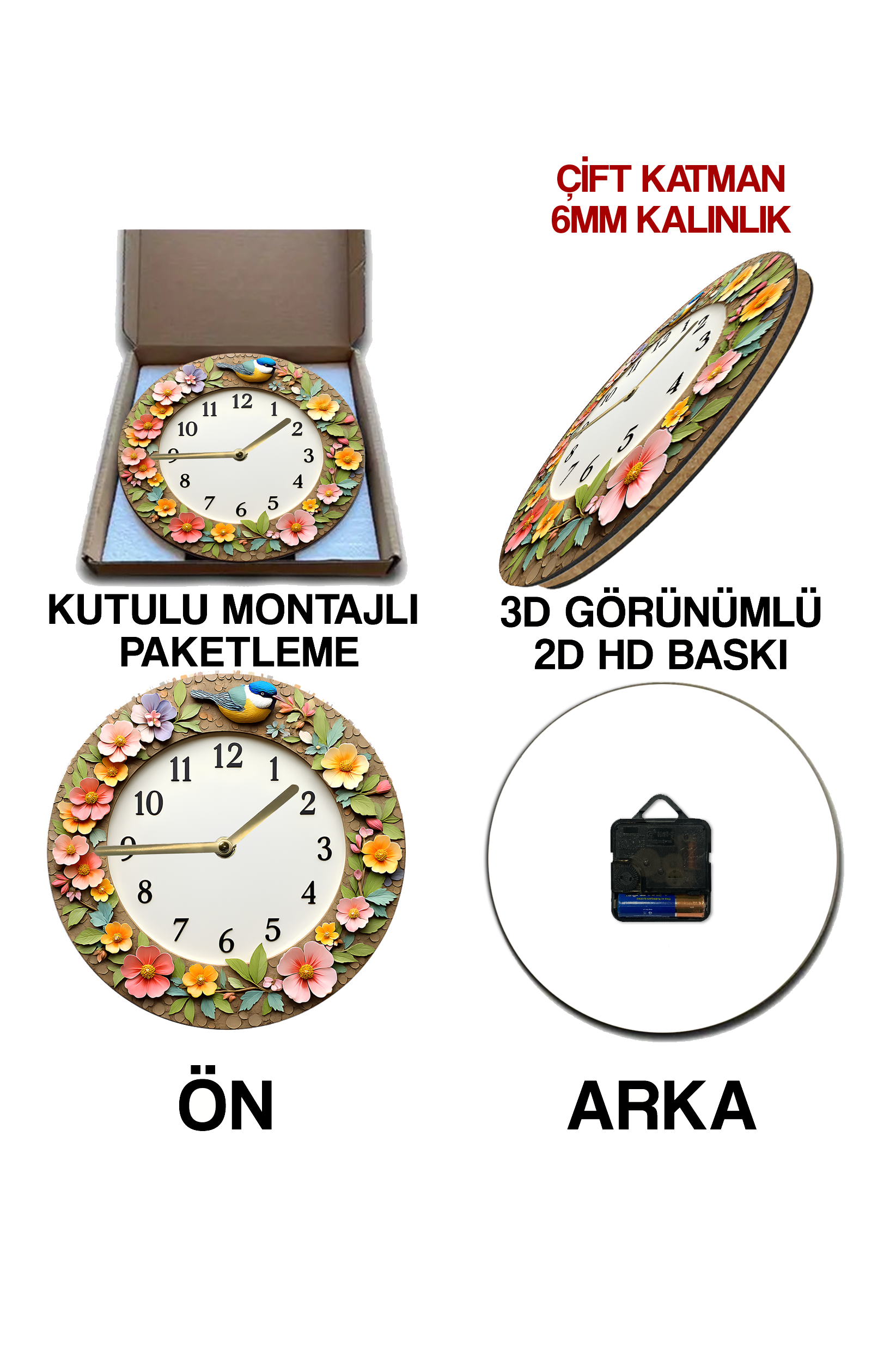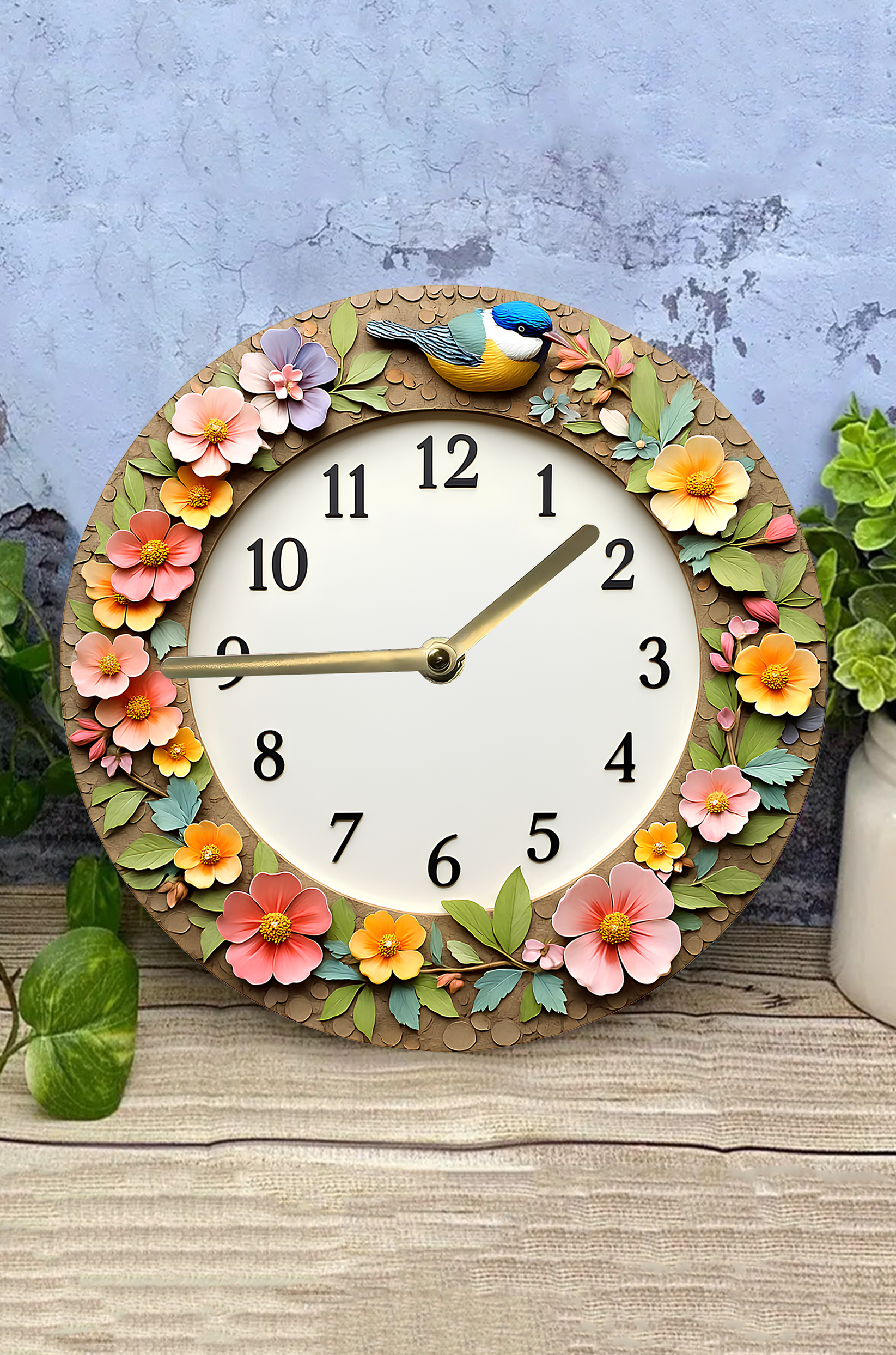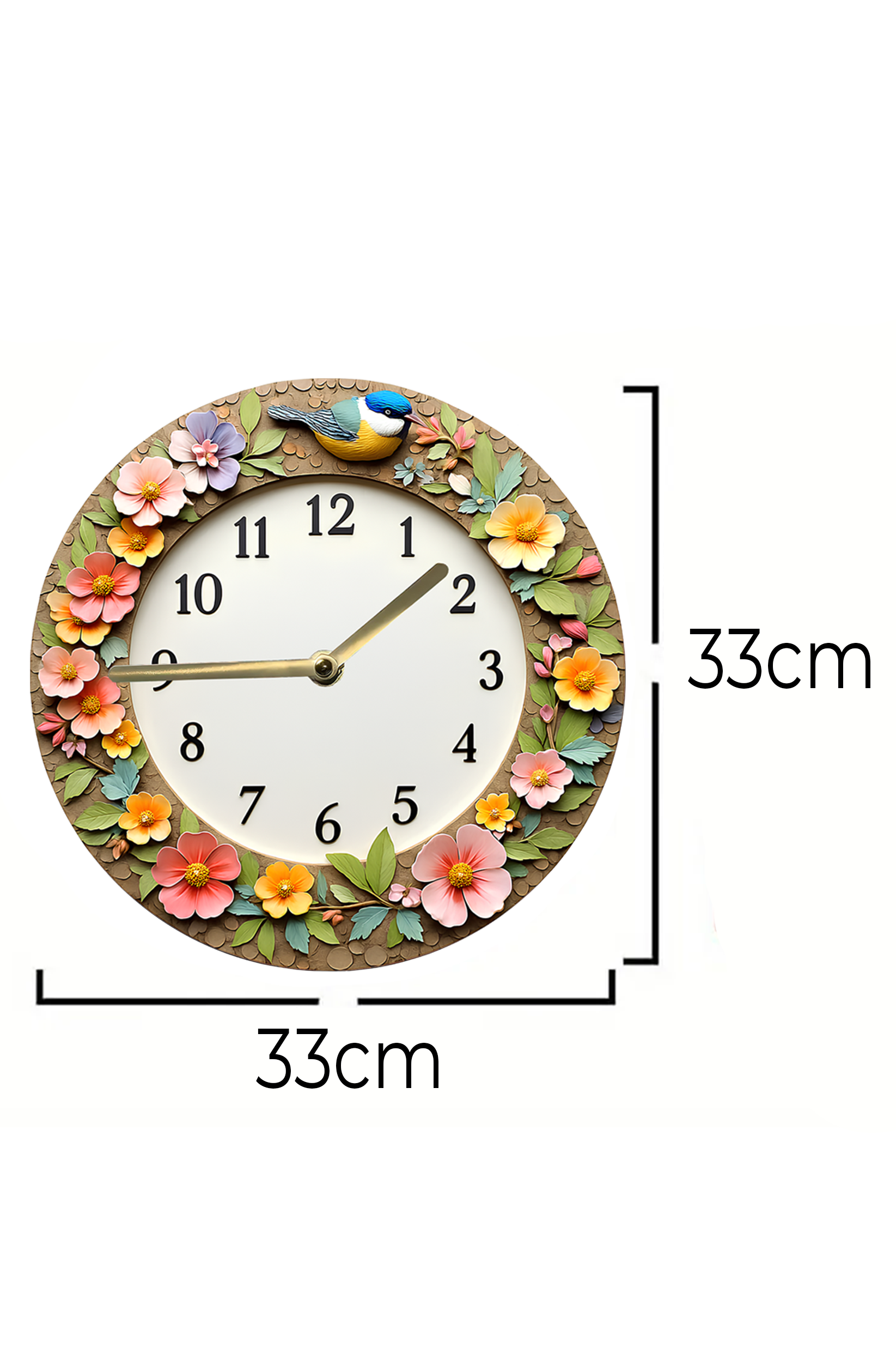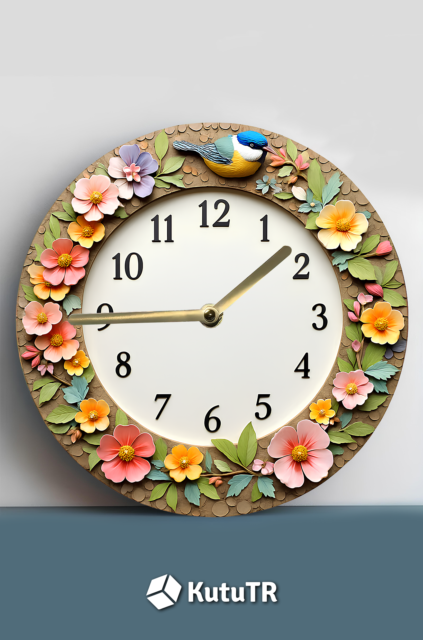 🌼 Çiçek ve Kuş Temalı 3D Görünümlü MDF Duvar Saati – 33 cm 🐦 sdw274