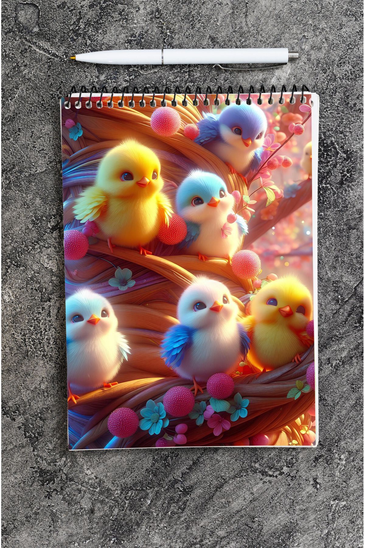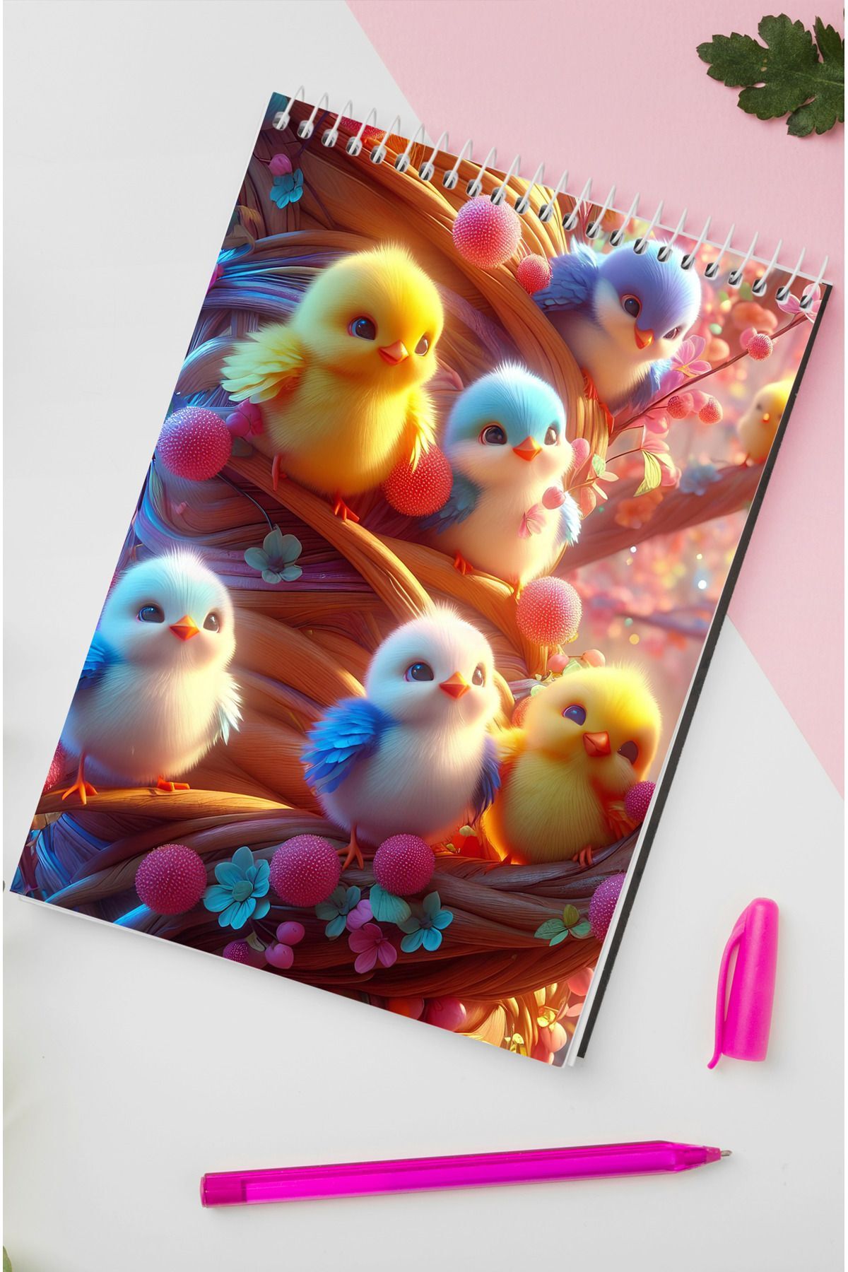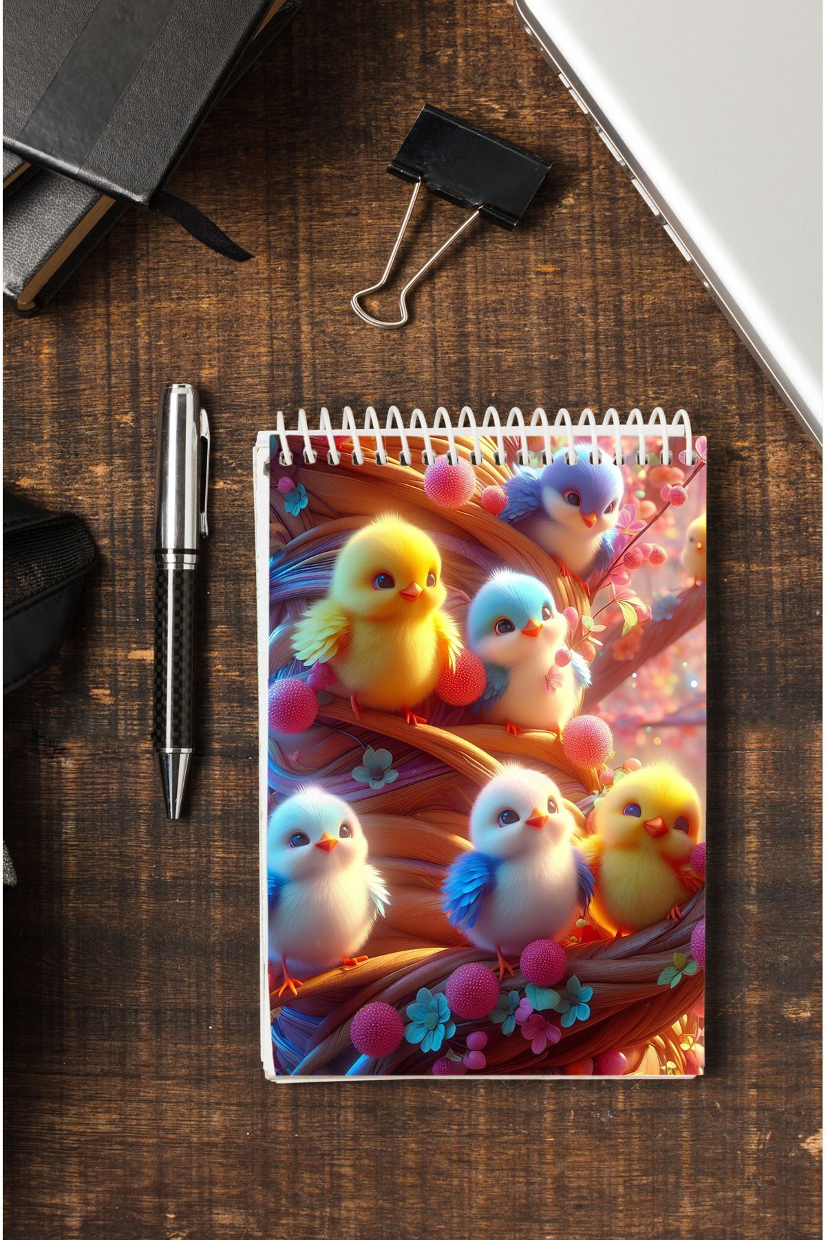 Civcivler Ahşap Mdf Kapaklı 80 Yaprak Çizgili 14x21 Vip Bloknot 70gr/m2 Ç-OB11