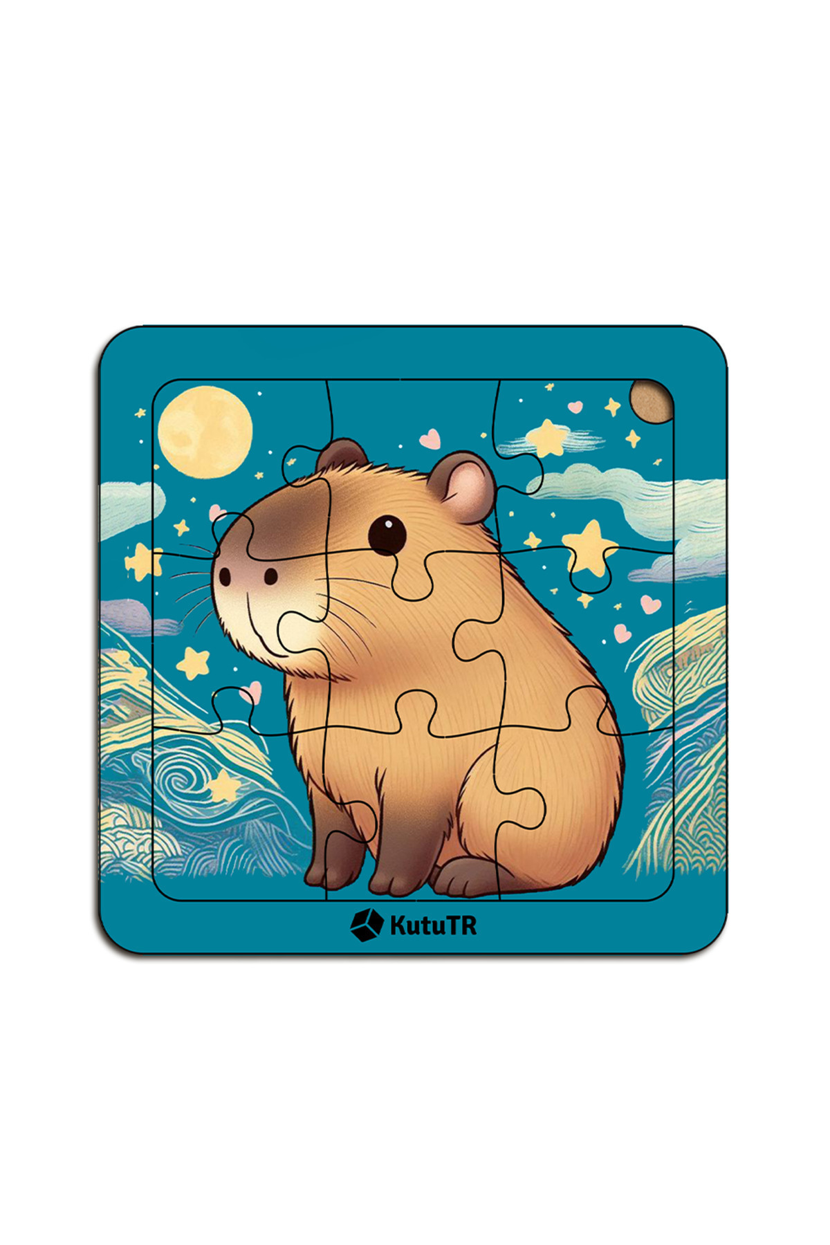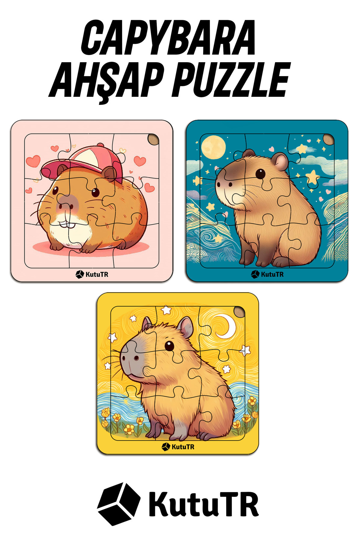 Çocuklar İçin Capybara Ahşap Renkli Yapboz 13x13 Ebadında Puzzle 9 Parça 3'lü Set 313