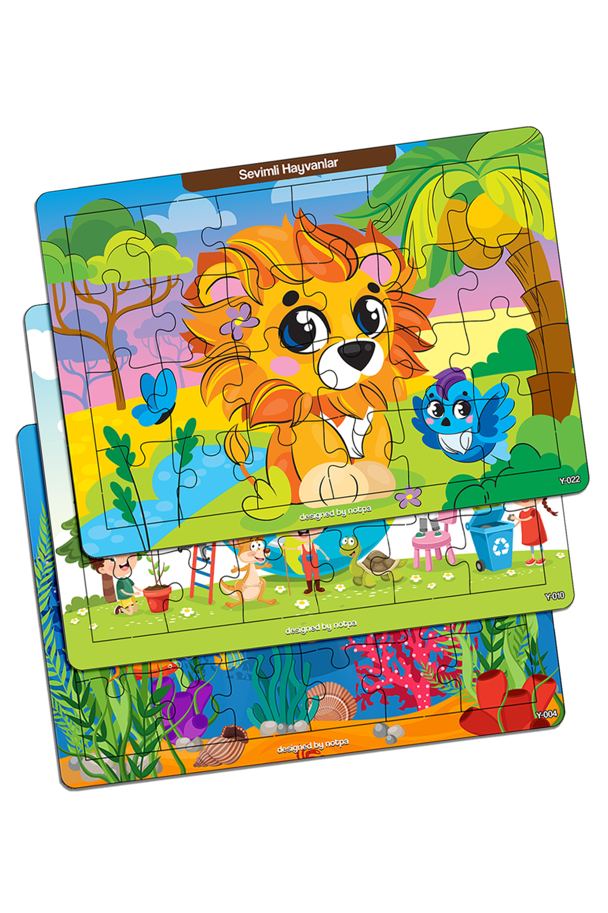 Çocuklar Için Eğitici Ve Öğretici Ahşap 24 Parça Renkli Puzzle 3lü Set 2