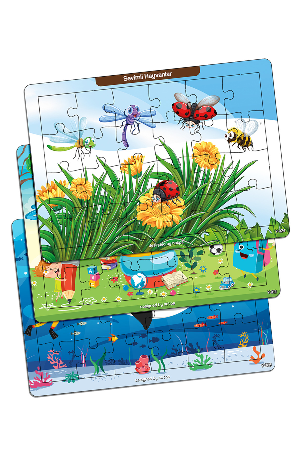 Çocuklar Için Eğitici Ve Öğretici Ahşap 24 Parça Renkli Puzzle 3lü Set 4
