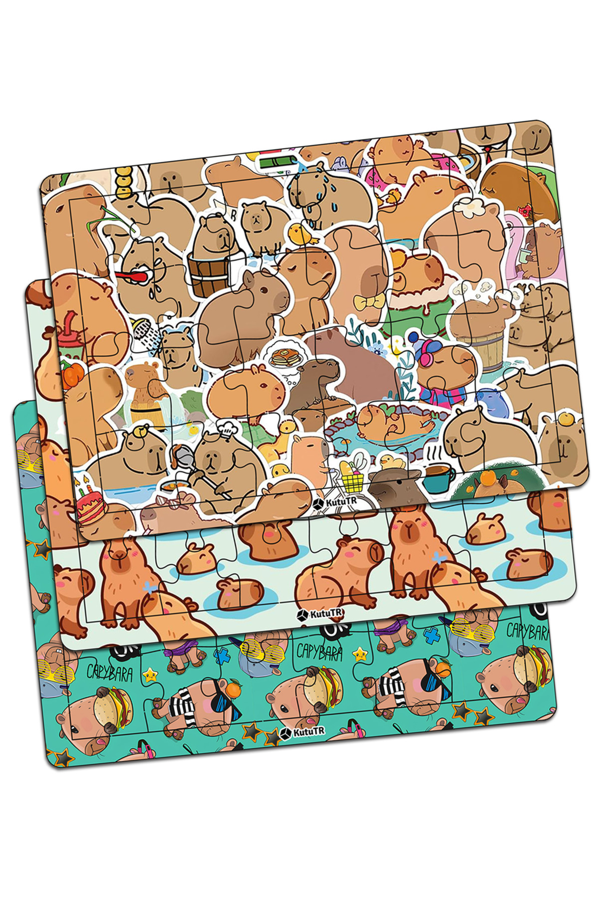 Çocuklar Için Eğitici Ve Öğretici Capybara Ahşap 24 Parça Renkli Puzzle 3lü Set