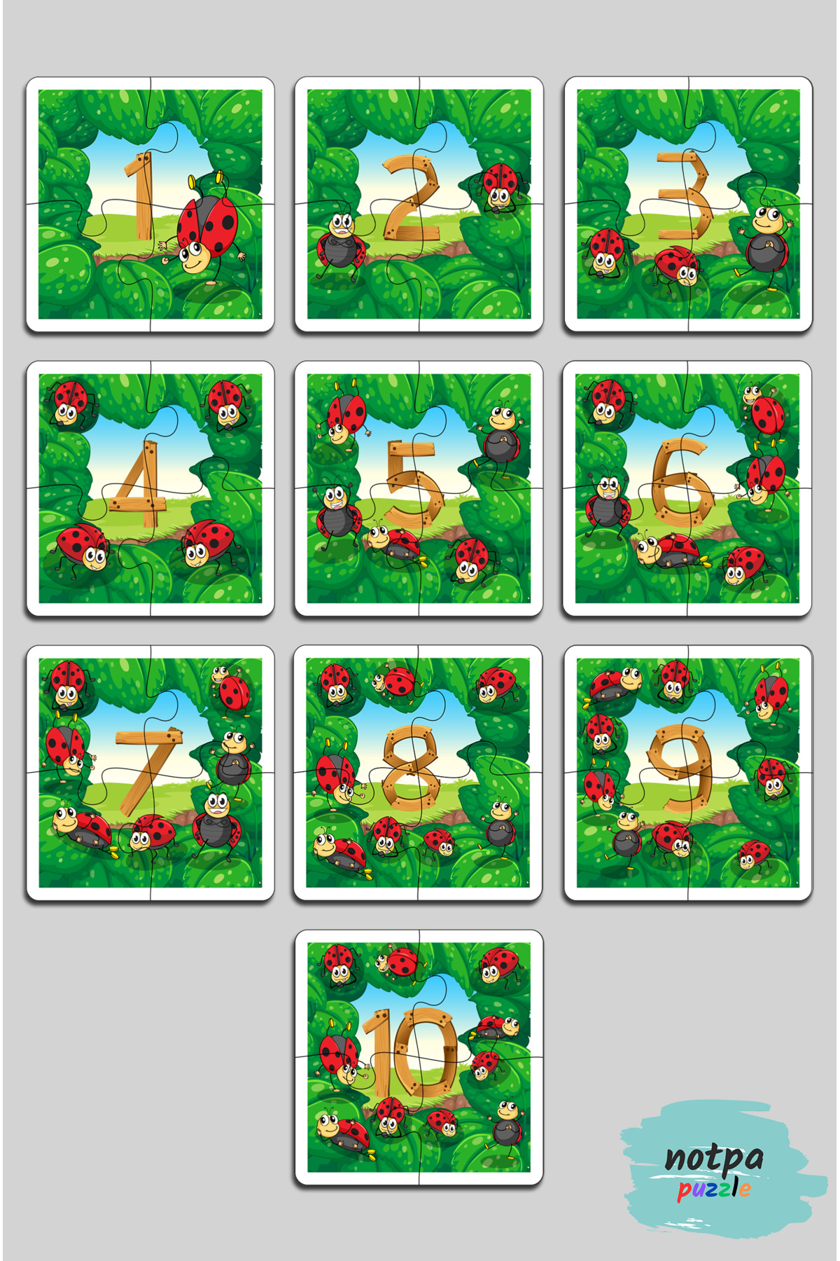 Çocuklar İçin Sayıları Öğrenme Puzzle Seti Ahşap Renkli Yapboz 13x13 Ebadında Puzzle 4 Parça 10'lu