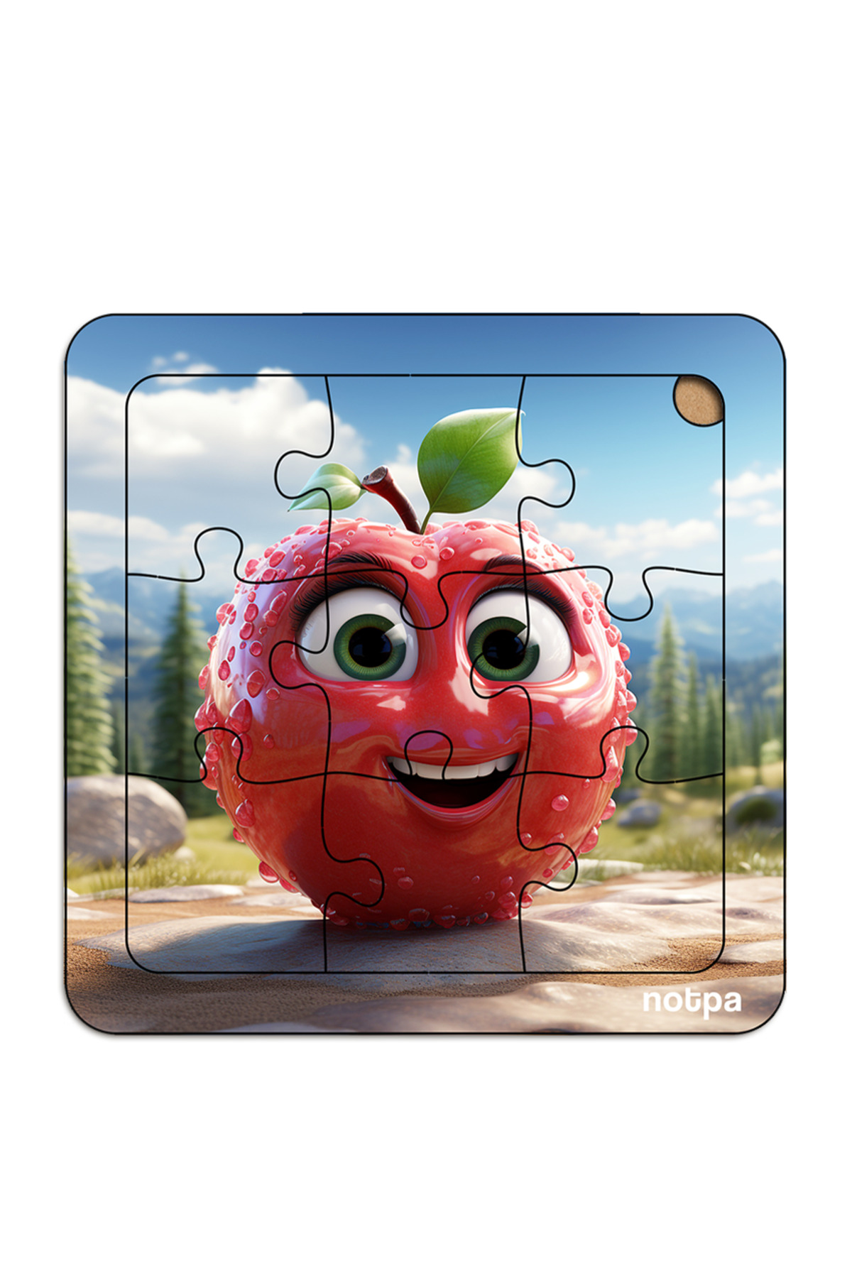 Çocuklar İçin Sevimli Meyveler Ahşap Renkli Yapboz 13x13 Ebadında Puzzle 9 Parça 3'lü Set 312
