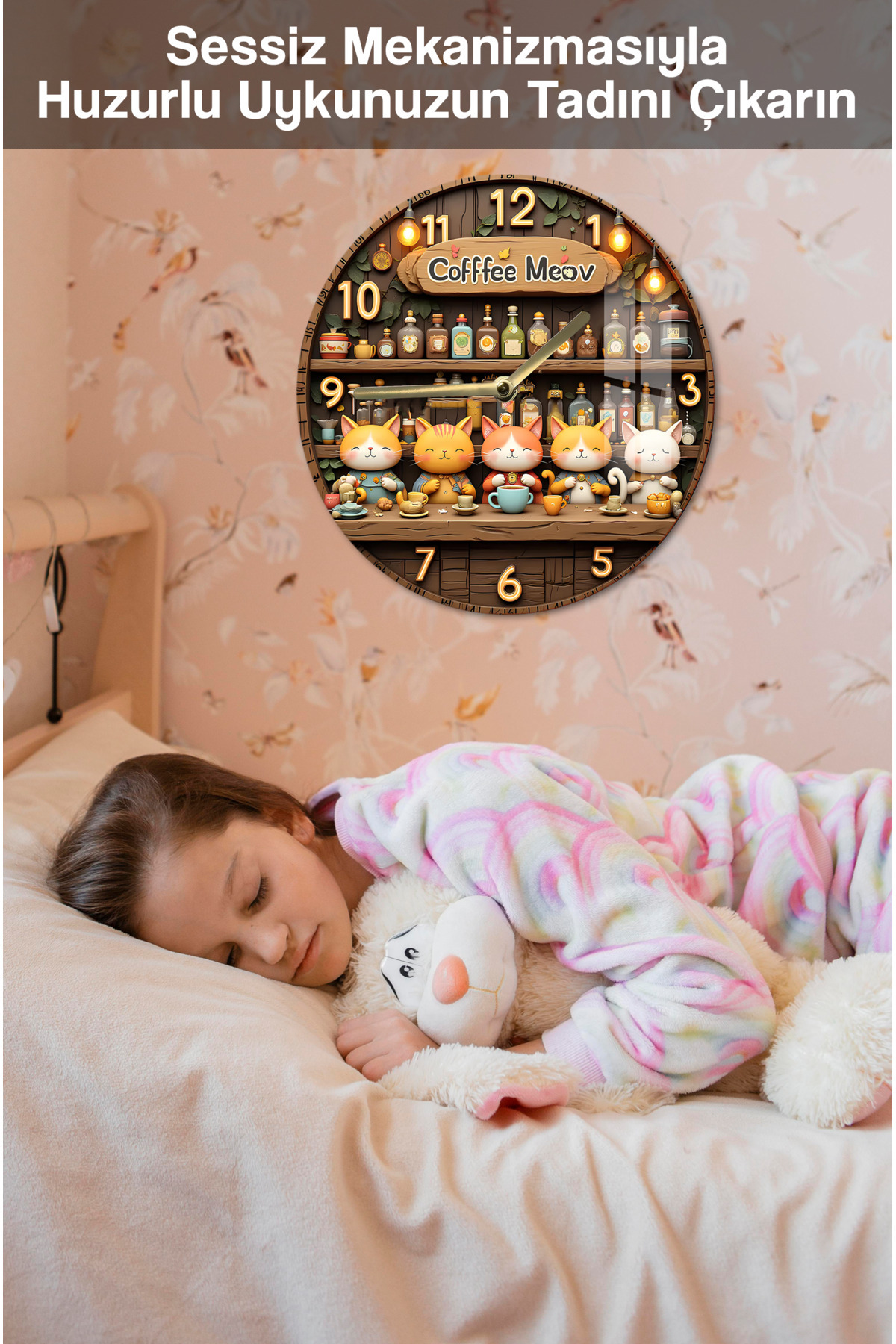 Coffee Meow 3D Görünümlü Temperli Cam Saat – 33 cm CSDW360