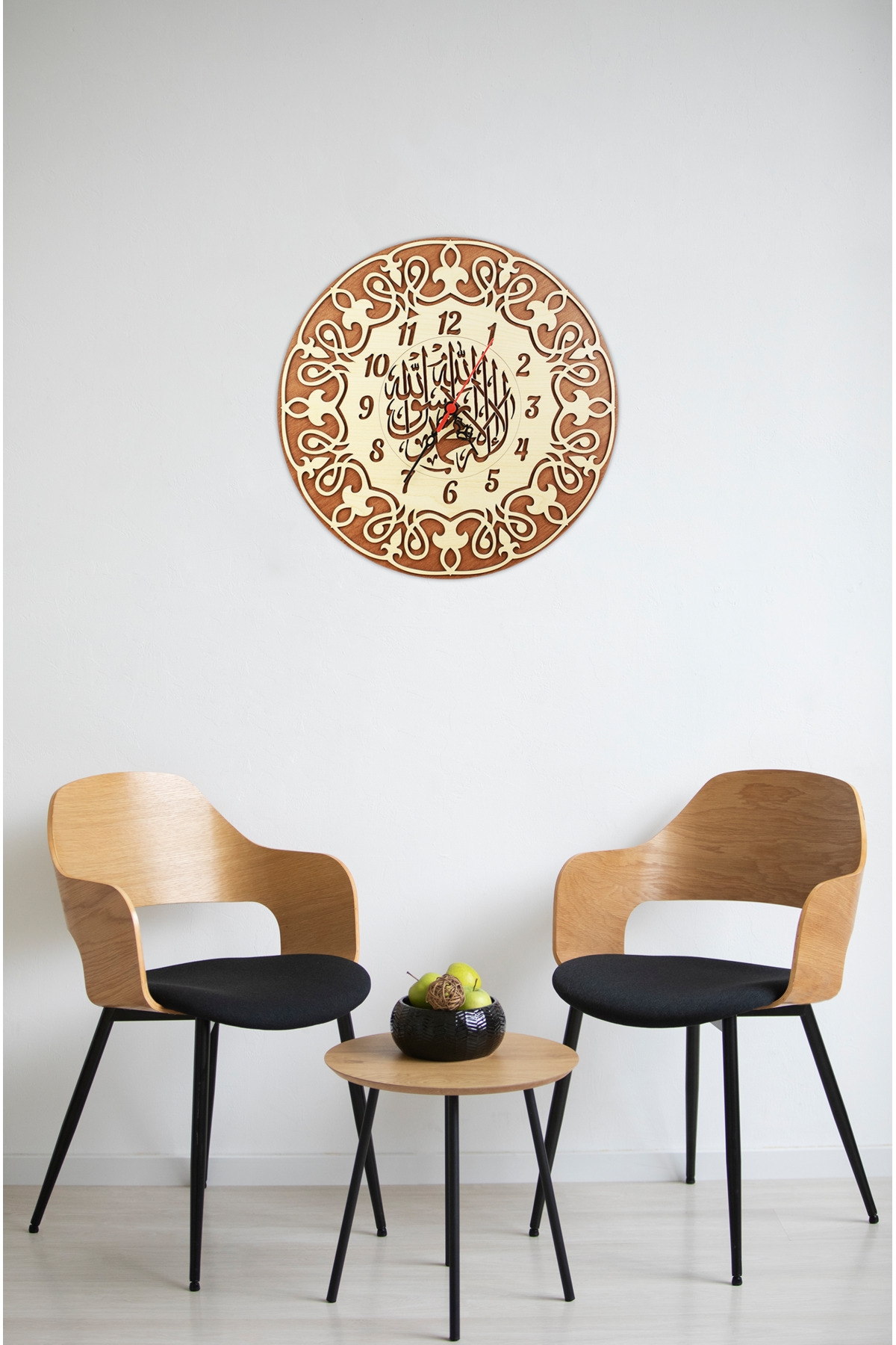 Dekoratif Ahşap Duvar Saati Çift Katmanlı İslami 33x33