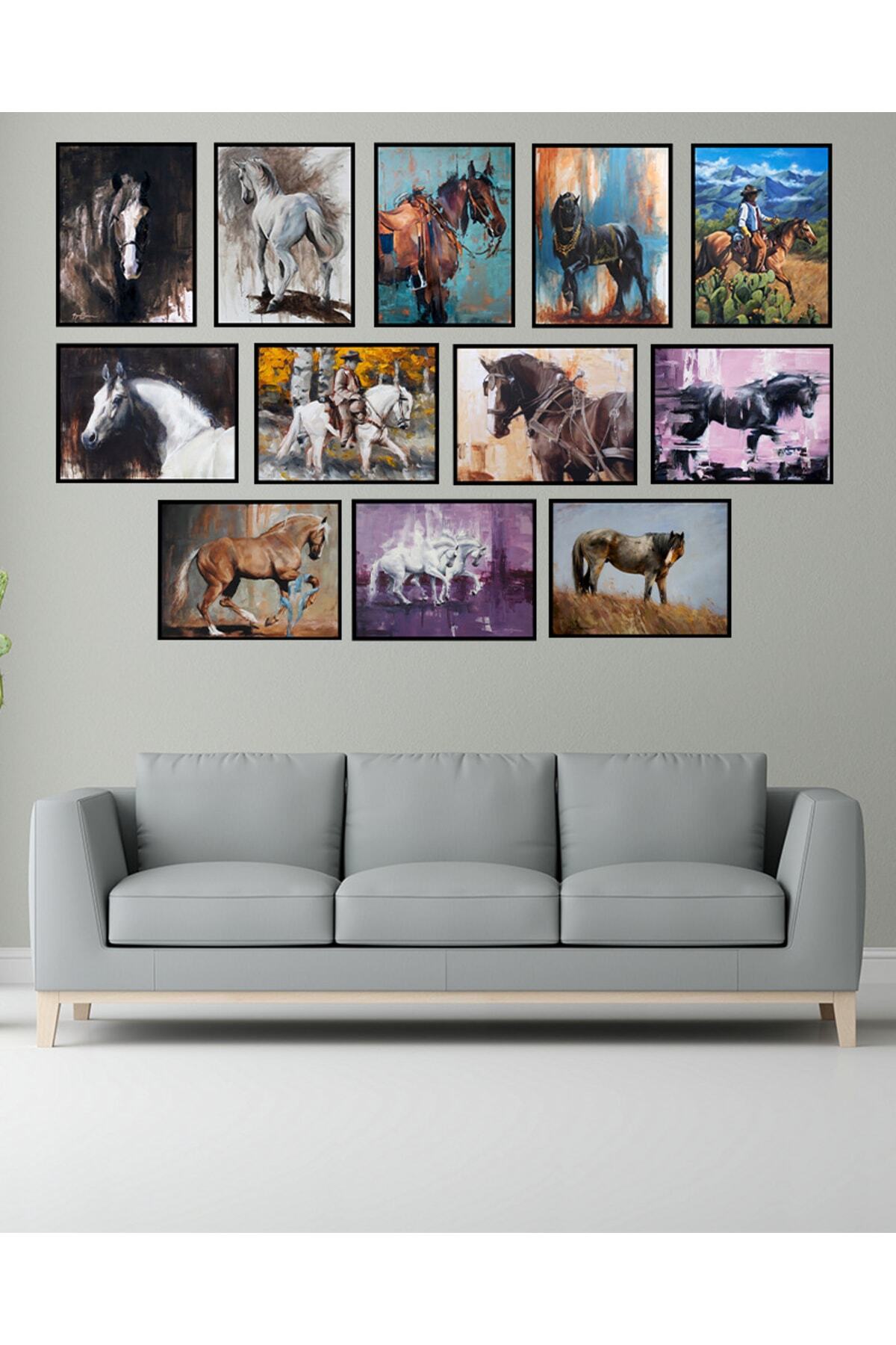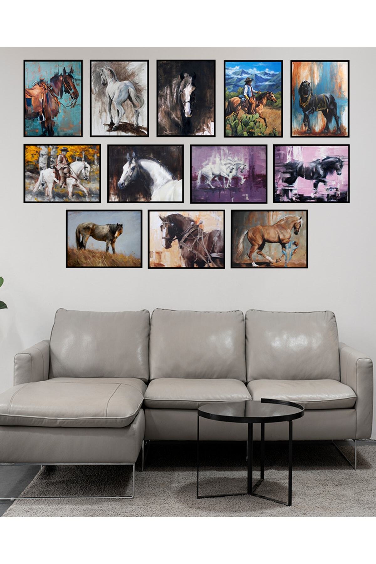 Dekorize Mdf Tablo Seti 12 Parça 3 Mm - Atlar Salon Oturma Yatak Odası Için Duvar Dekoru
