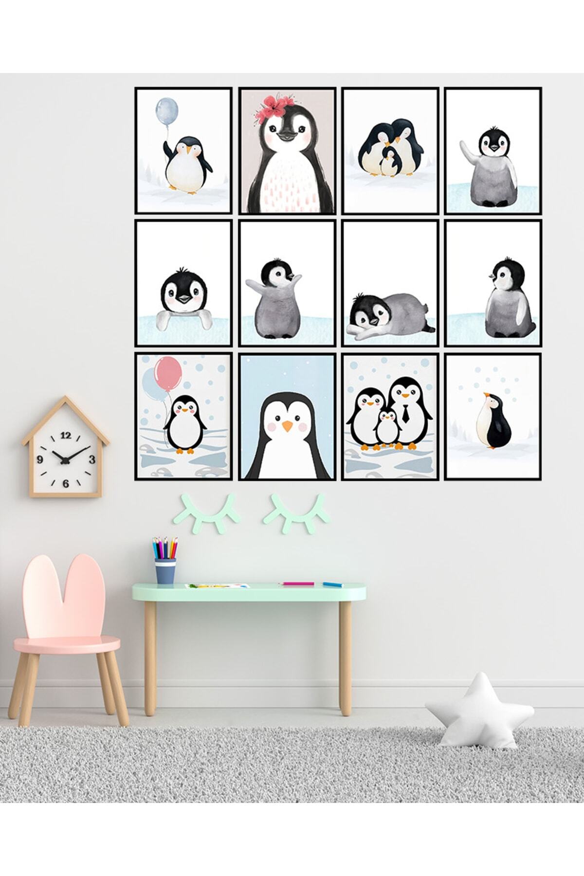 Dekorize Mdf Tablo Seti 12 Parça 3 Mm - Penguen Salon Oturma Yatak Odası Için Duvar Dekoru
