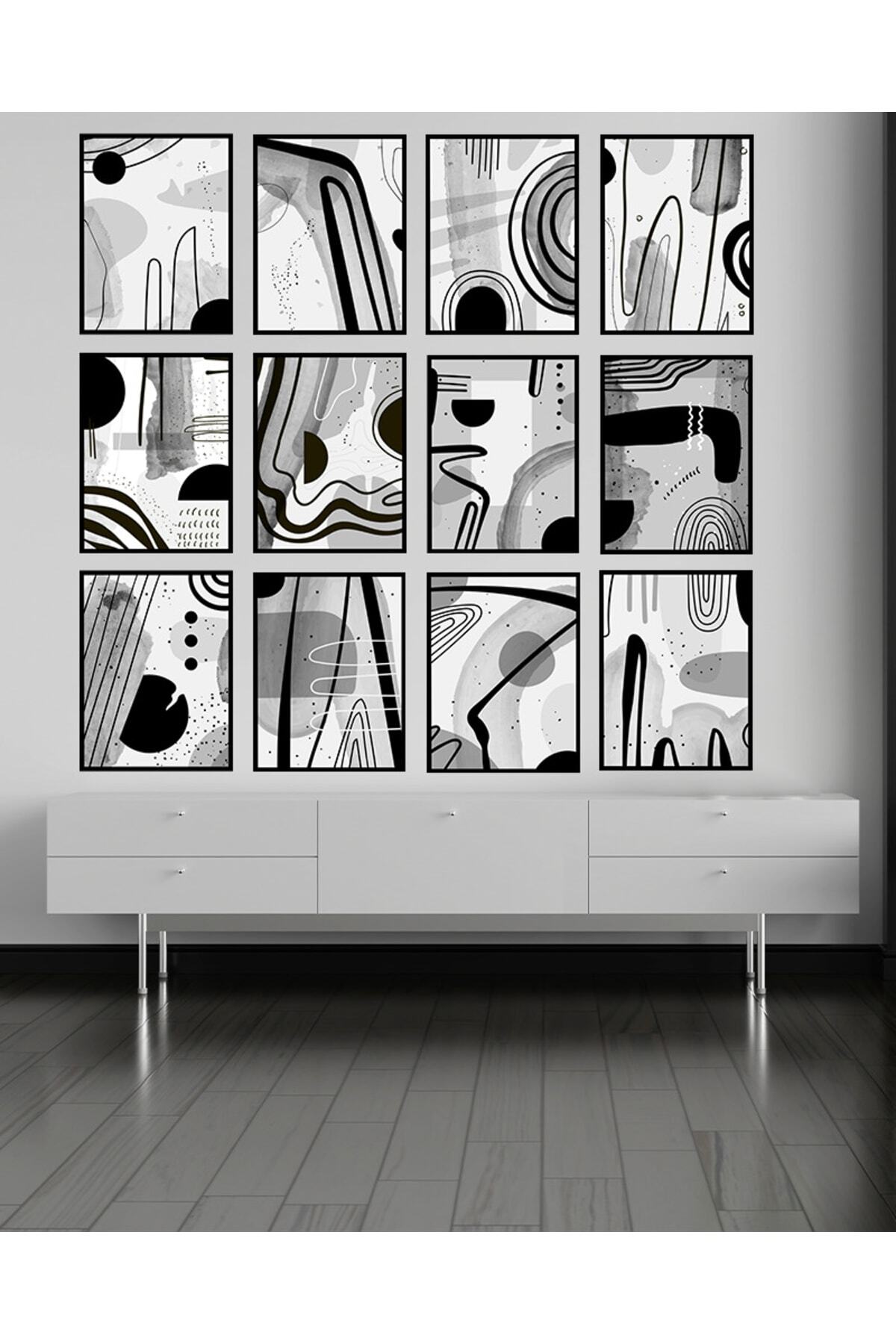 Dekorize Mdf Tablo Seti 12 Parça 3 Mm - Siyah Beyaz Salon Oturma Odası Için Duvar Dekoru