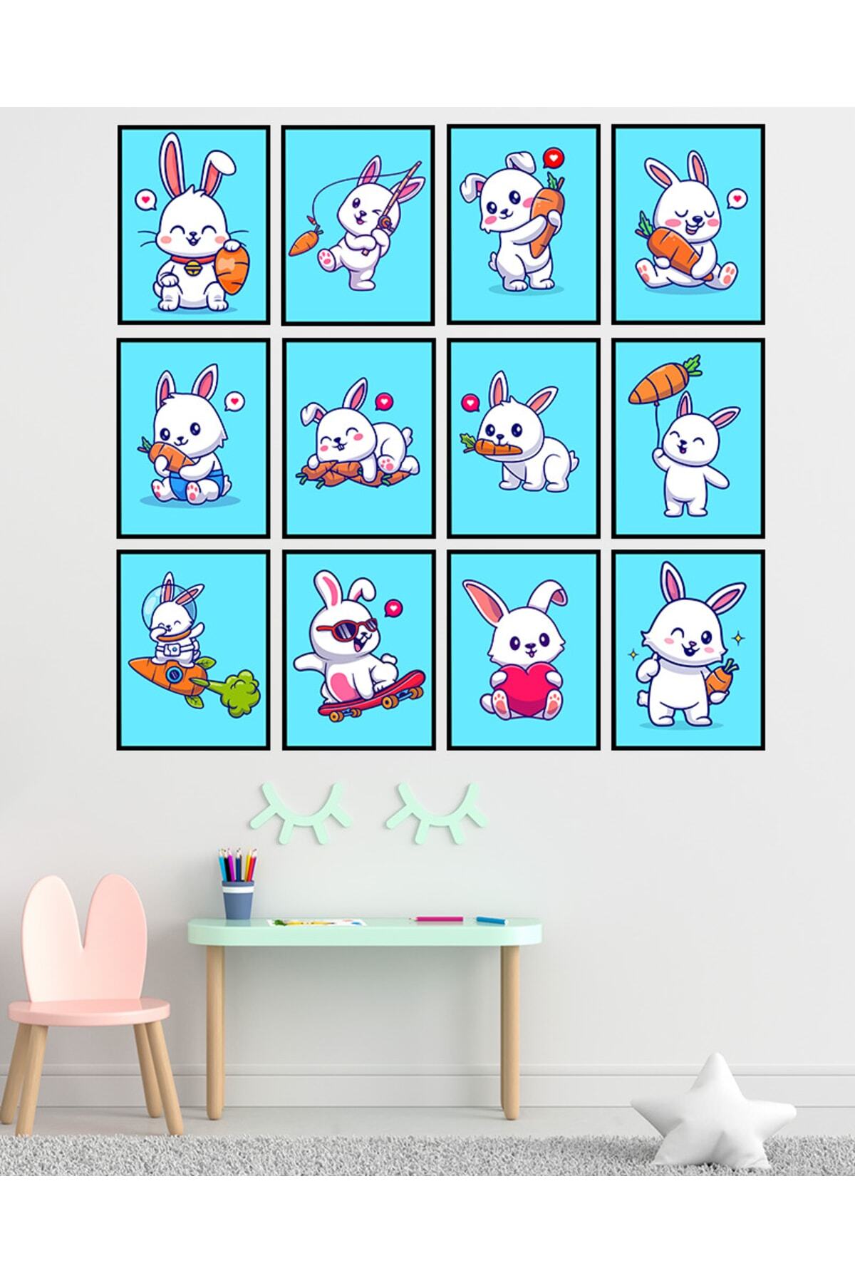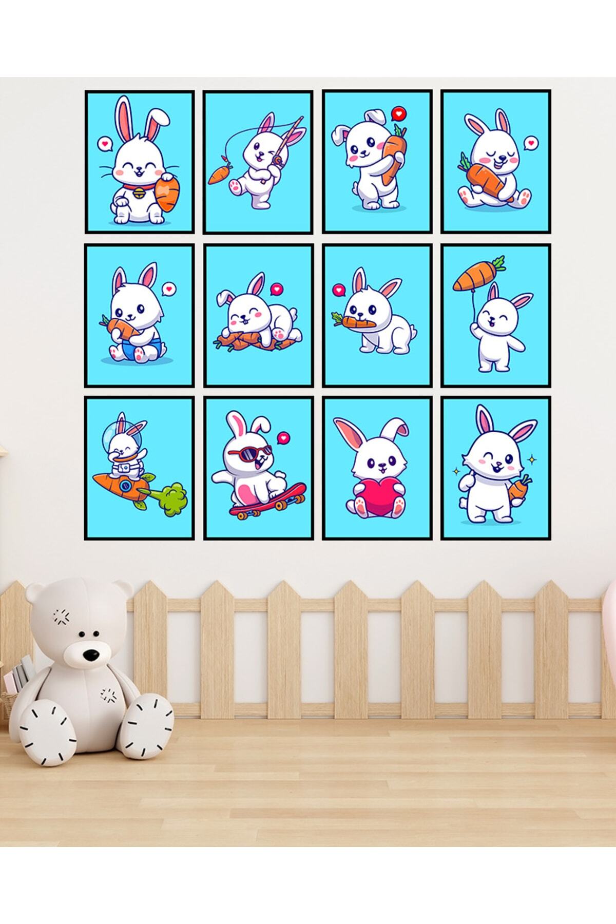 Dekorize Mdf Tablo Seti 12 Parça 3 Mm - Tavşanlar Çocuk Odası Için Duvar Dekoru