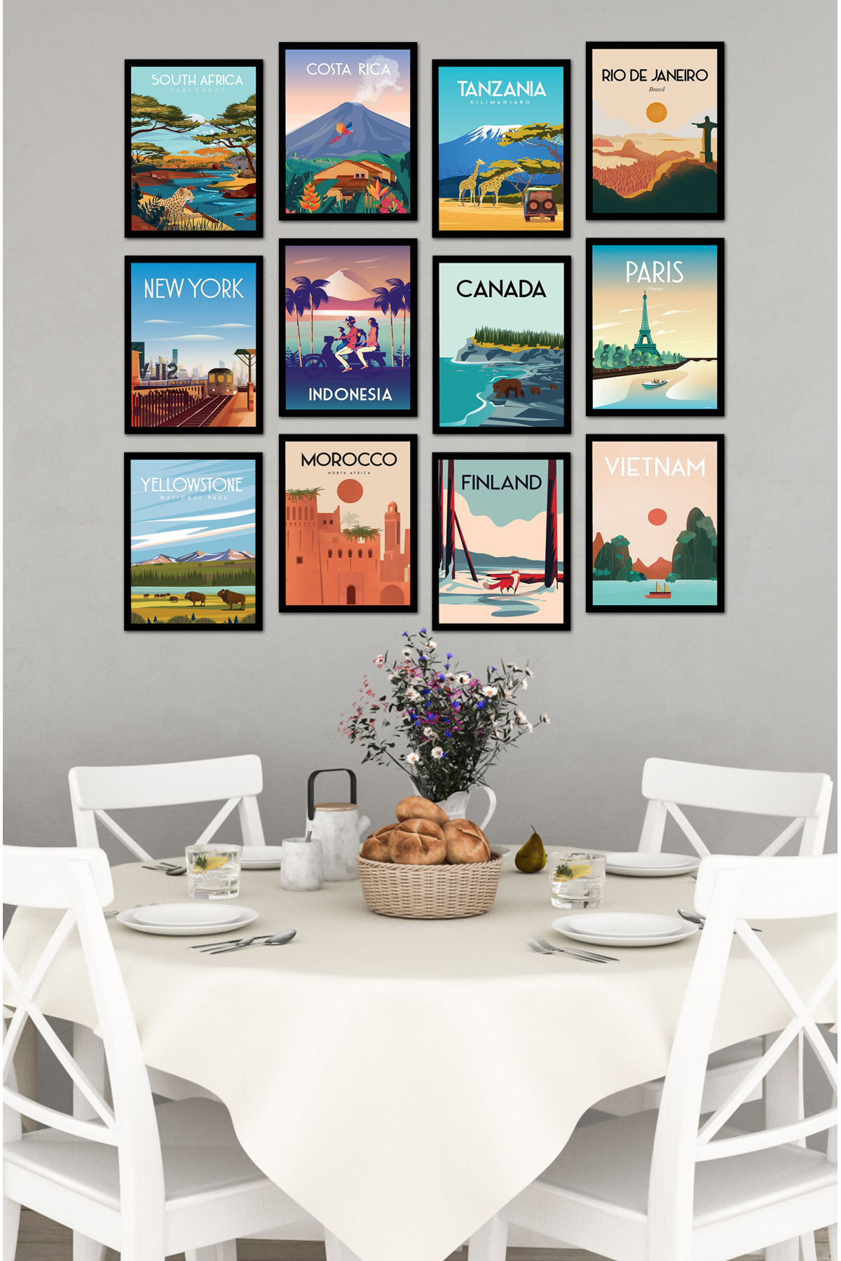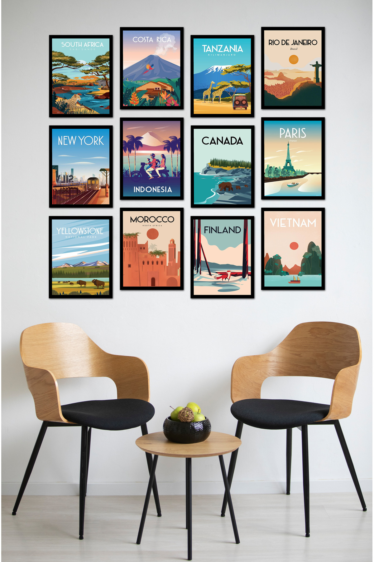 Dekorize Mdf Tablo Seti 12 Parça 3 mm - Üşkeler Salon ve Oturma Odası İçin Duvar Dekoru Ülke005