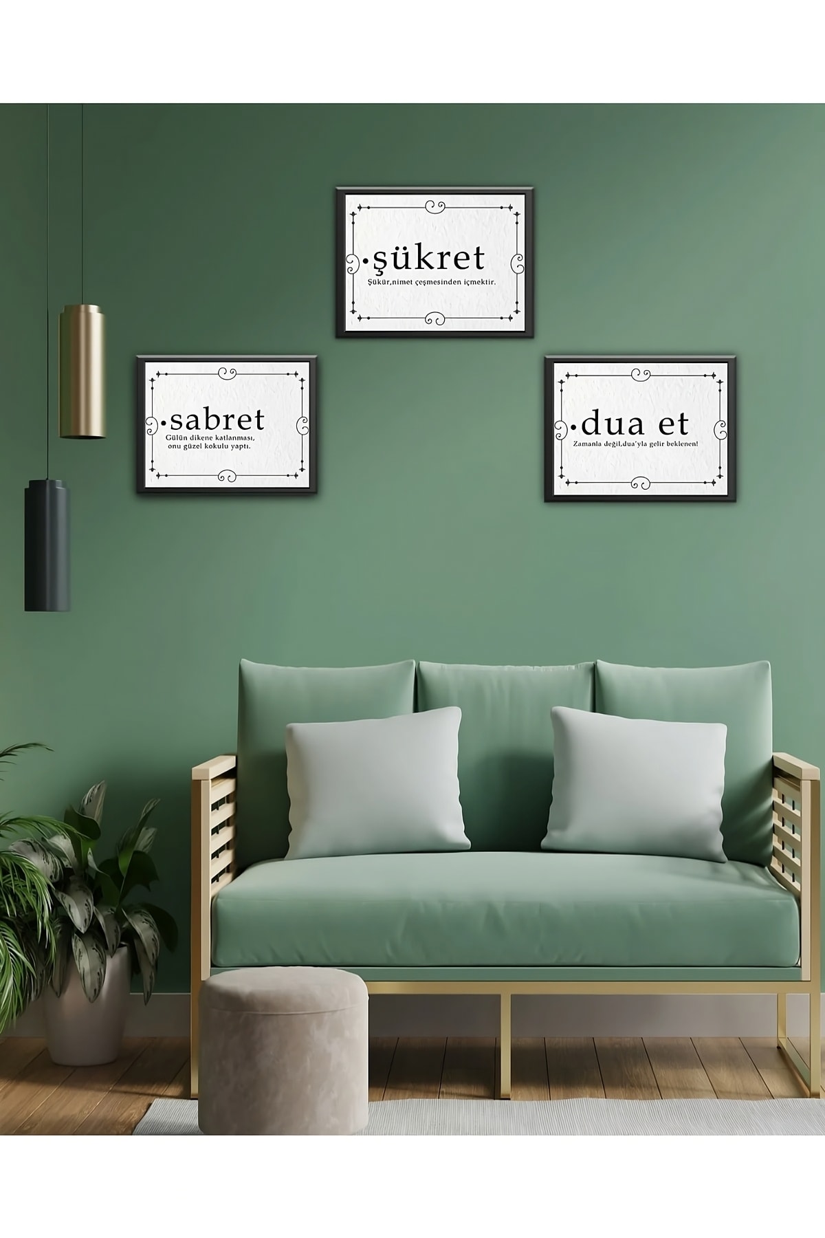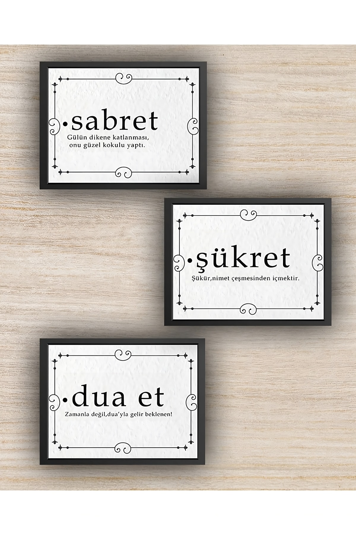 Dekorize Mdf Tablo Seti 3 Parça 3mm - Sabret Şükret Dua Et Oturma Odası Için Duvar Dekoru