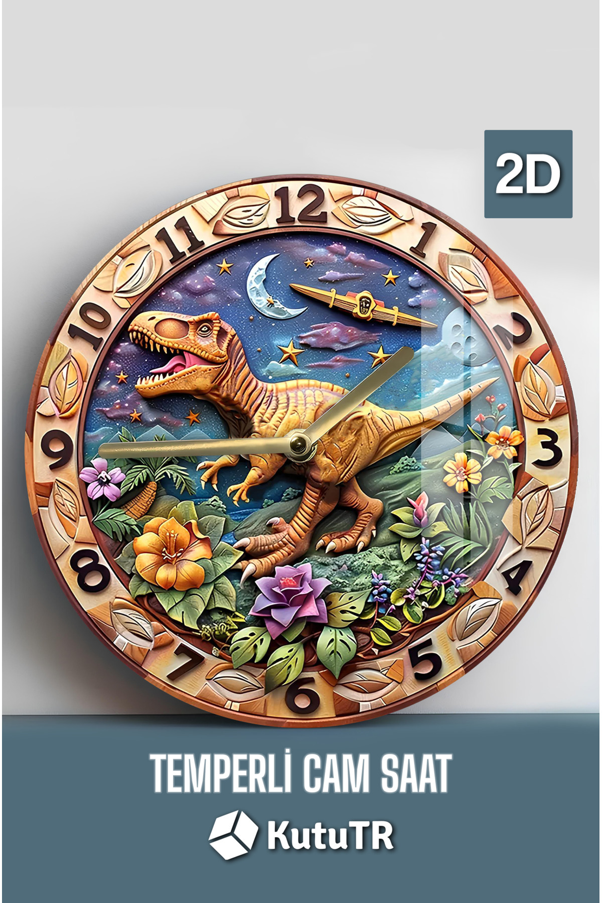 Dinozor Temalı Temperli Cam Saat – 33x33 cm CSDW008