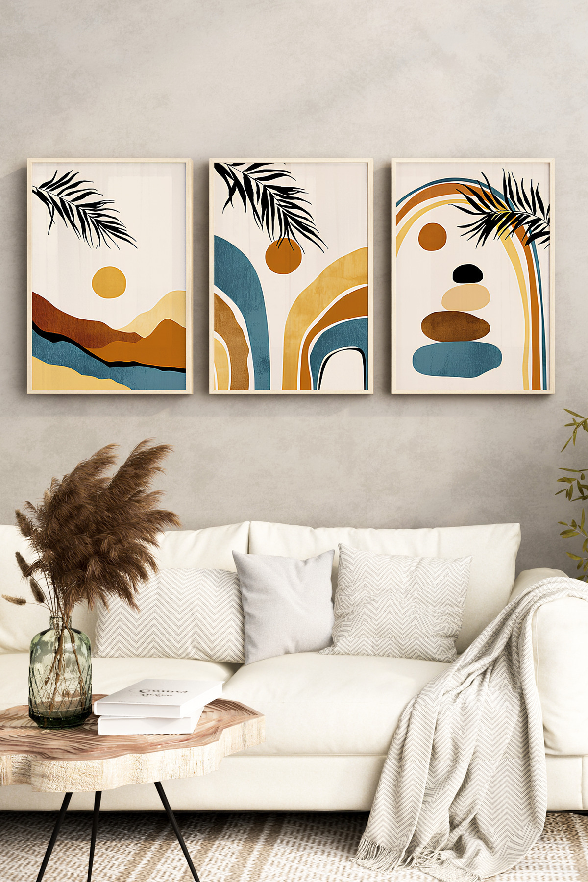 🌿 Doğal Tonlarda Modern Soyut 3'lü Çerçeveli Tablo Seti – MDF Zeminli, Ahşap Çerçeveli 🌿 CRV1177