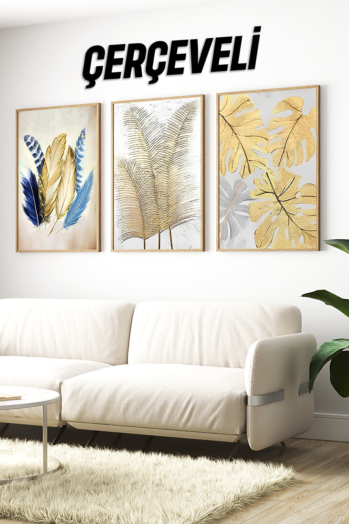 🌿 Doğanın Ferahlığı Evinizde: Yeşil Yaprak Temalı 3’lü Çerçeveli Tablo Seti 🌿 CRV1172