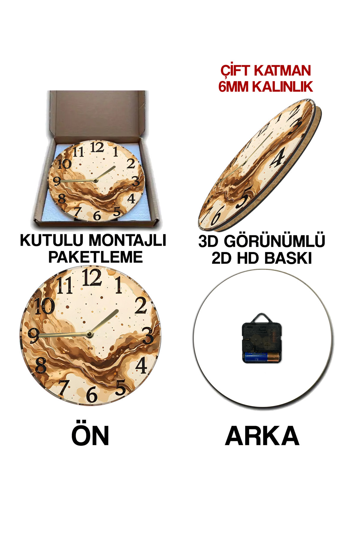 ☕ Doğanın Ruhu ile Evinizde Zaman Akıyor – Kahve Tonlarında 3D Görünümlü MDF Duvar Saati sdw299