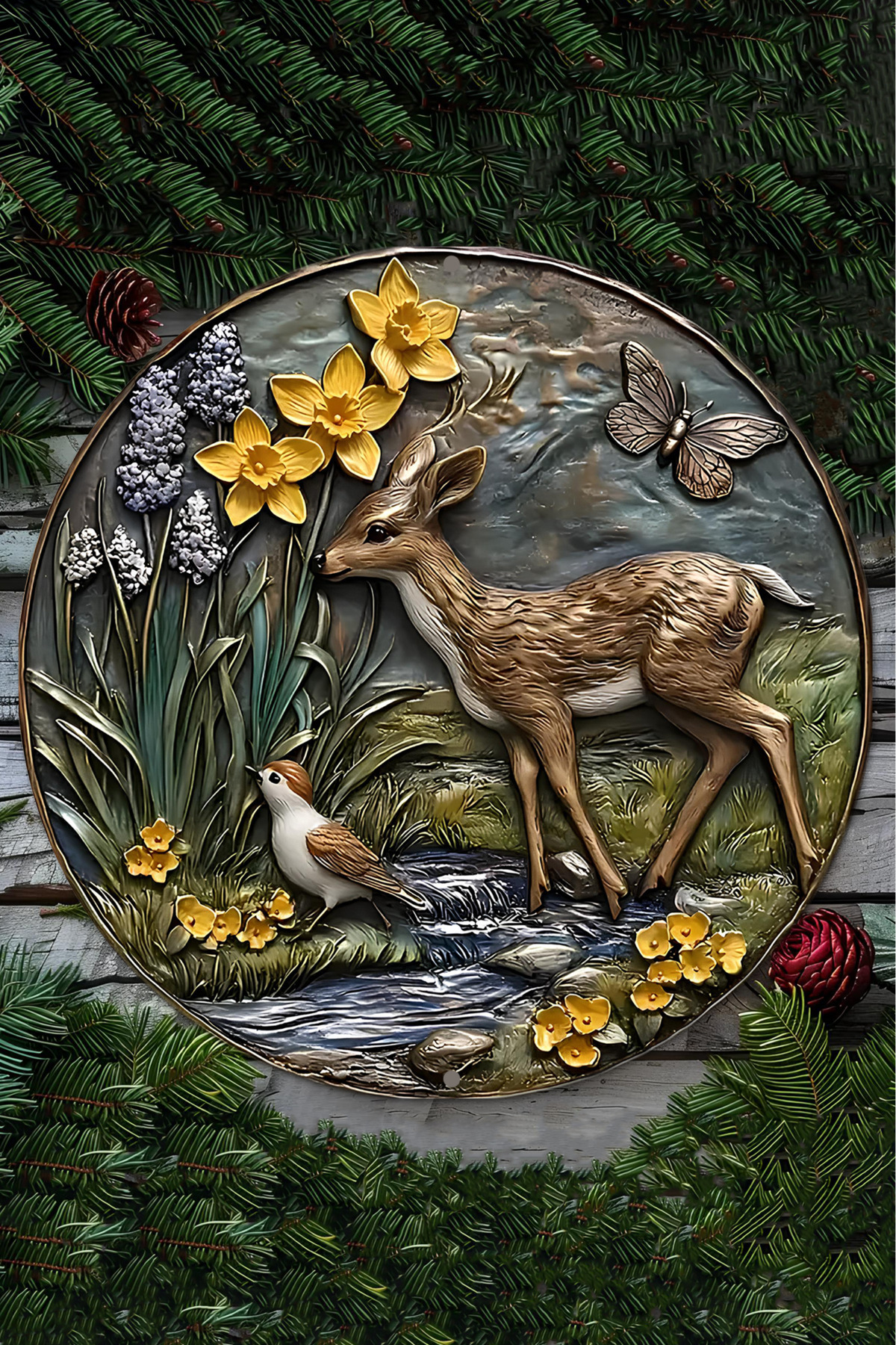 🌿 Doğanın Zarafeti - Ceylan ve Bahar Çiçekleri MDF Duvar Süsü (20 cm) 🌸 DT027