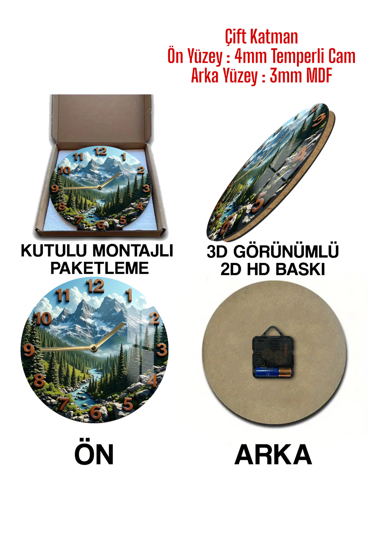 Doğanın Zarafeti Evinizde! 3D Görünümlü Temperli Cam Saat – 33 cm CSDW272