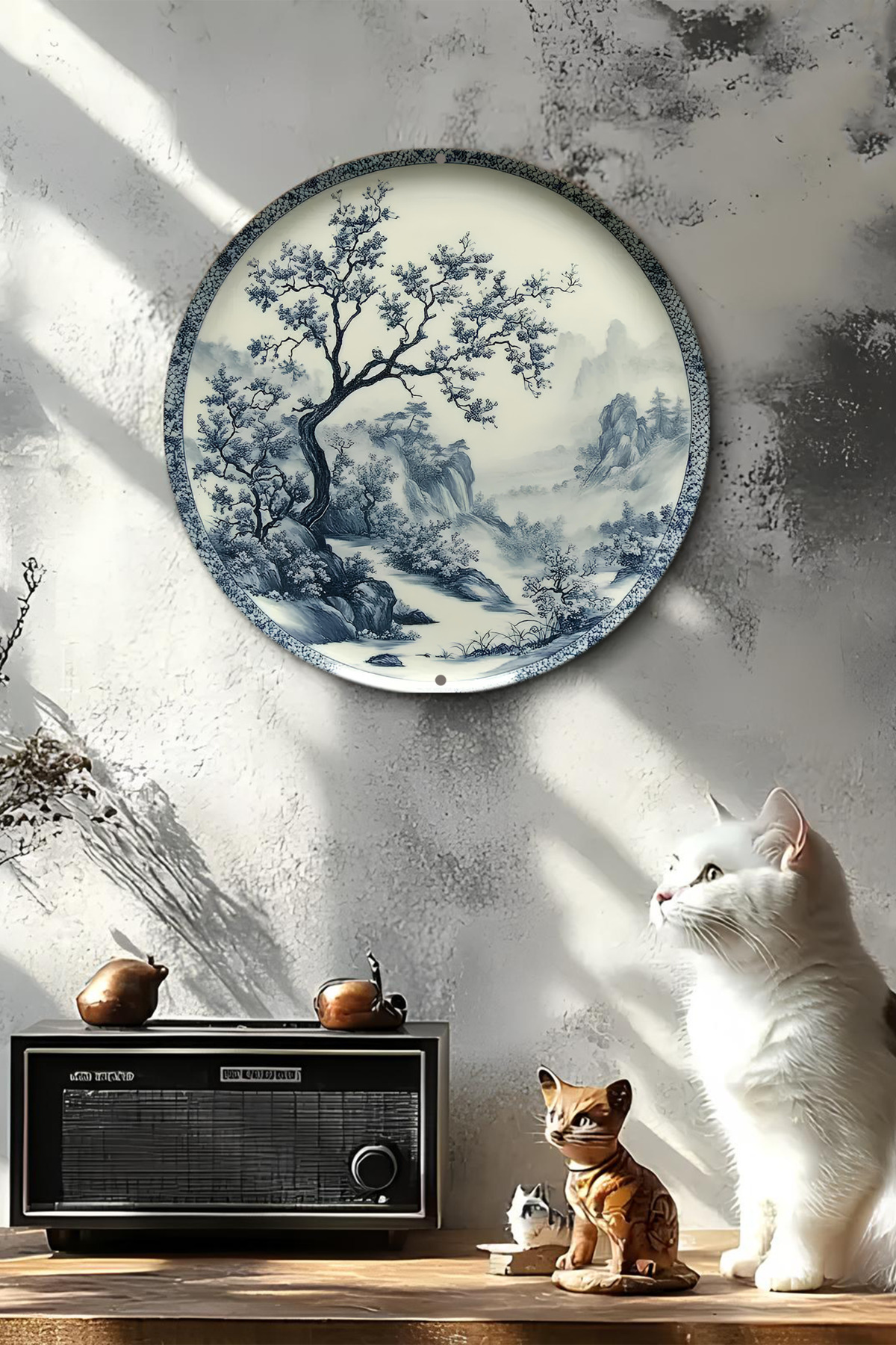 🏞️ Doğunun Sessizliği – Çin Mürekkep Sanatı Temalı MDF Duvar Dekoru (20 cm) DT026