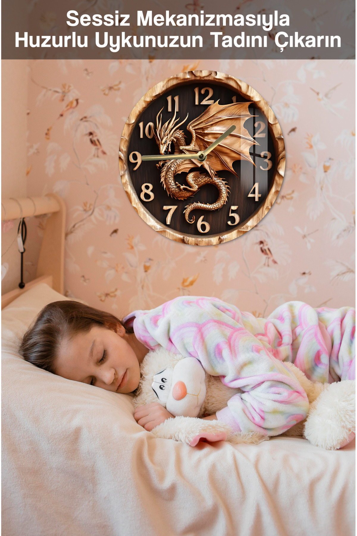 Ejderha Temalı Şık Tasarım 3D Görünümlü Temperli Cam Saat – 33 cm CSDW044