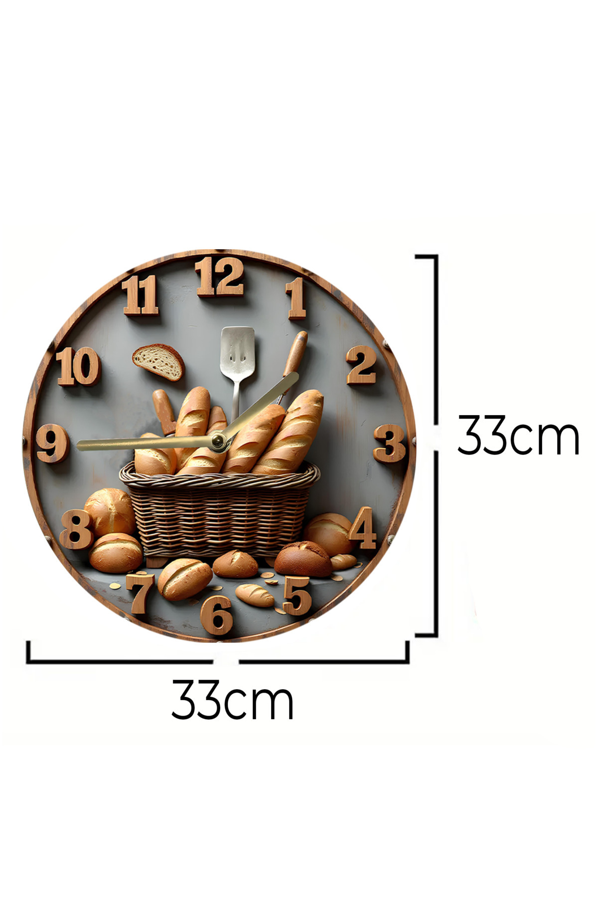 Ekmek Temalı Temperli Cam Duvar Saati – 33x33 cm CSDW347