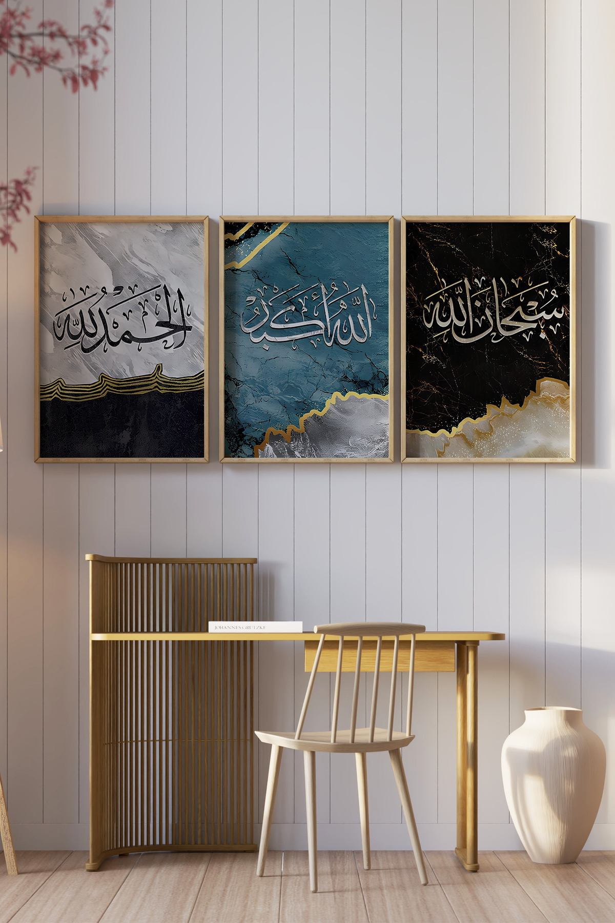 ✨ Elhamdülillah - Allahu Ekber - Sübhanallah Yazılı 3'lü Çerçeveli Tablo Seti ✨ CRV1215