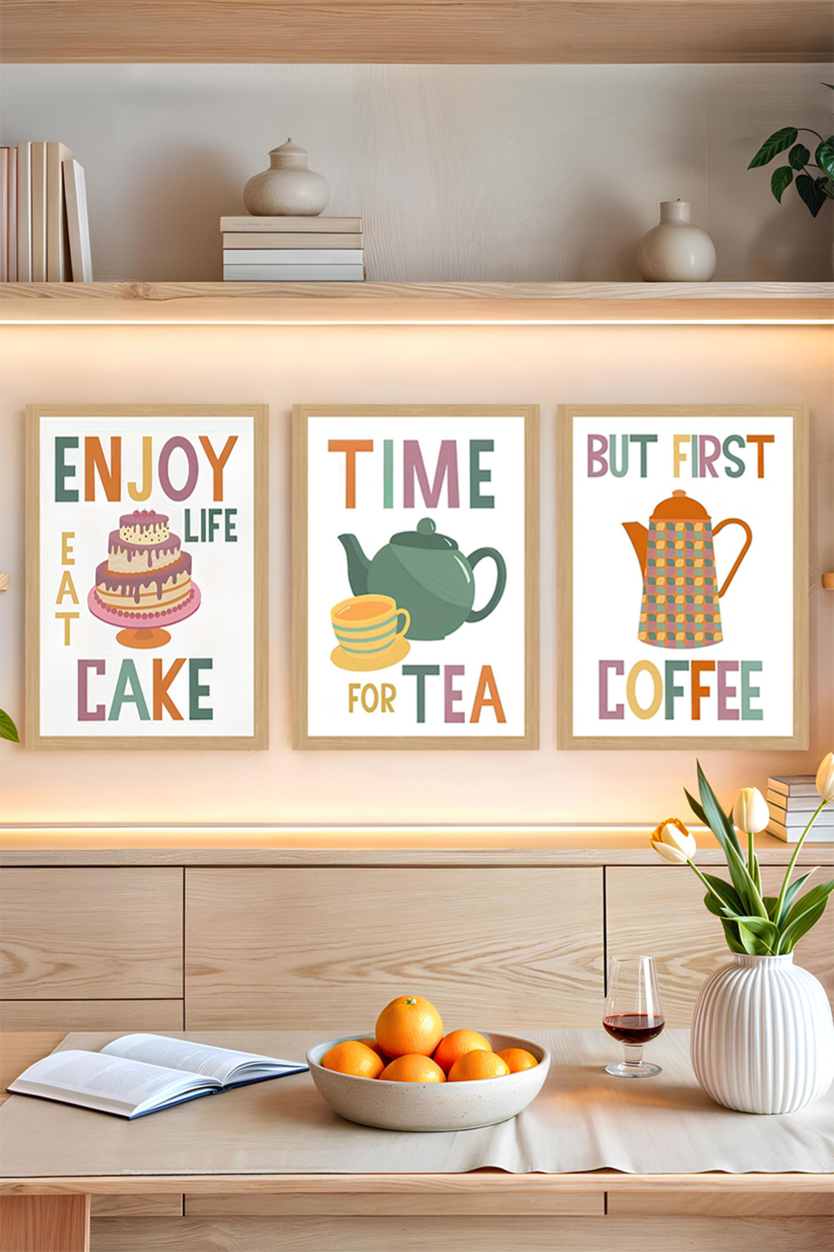 🍰☕ ENJOY LIFE | TIME FOR TEA | BUT FIRST COFFEE – UV Baskılı 3'lü CRVS1048