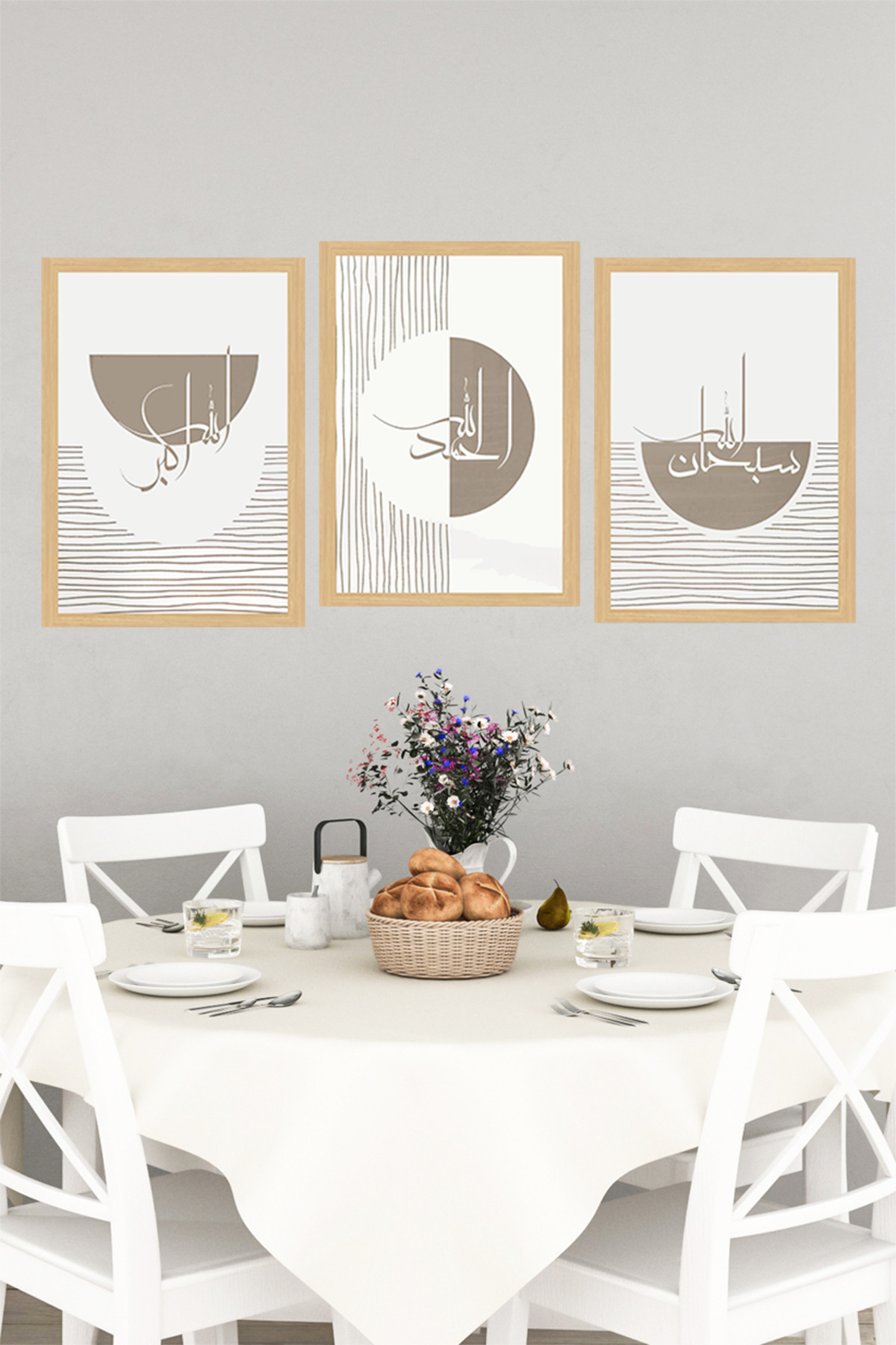 🌿 Estetik ve Anlamın Buluştuğu 3’lü Tablo Seti – Subhanallah • Elhamdülillah AllahuEkber 🌿CRVS1198
