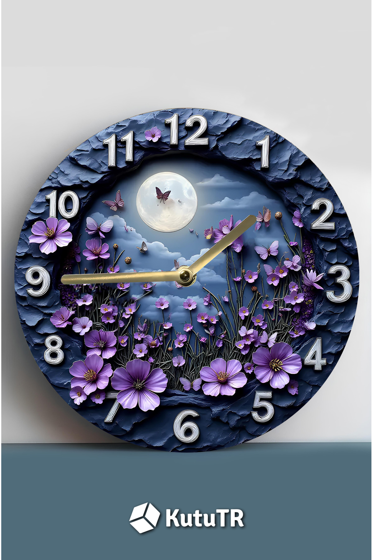 🌙 Gece Bahçesi - 3D Görünümlü Sessiz MDF Duvar Saati (33 cm) sdw281