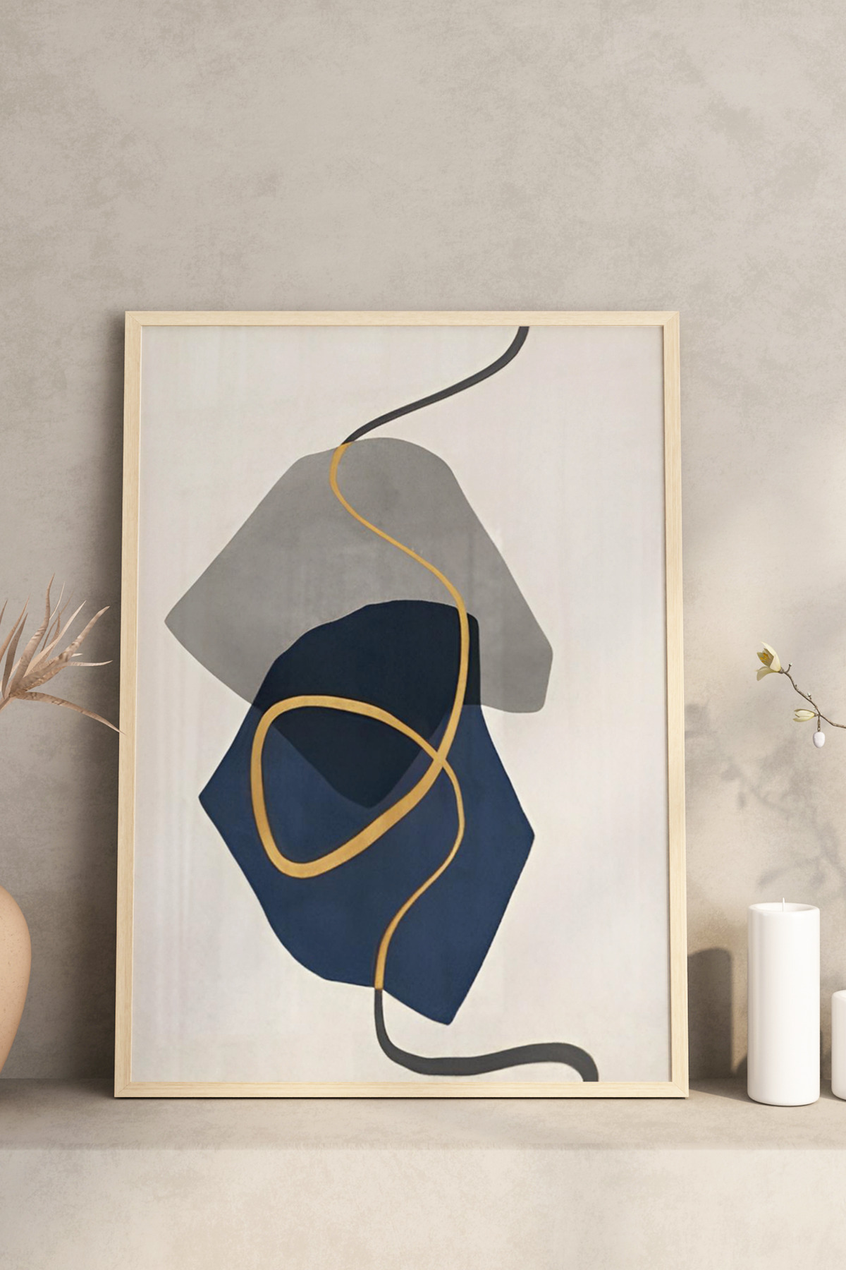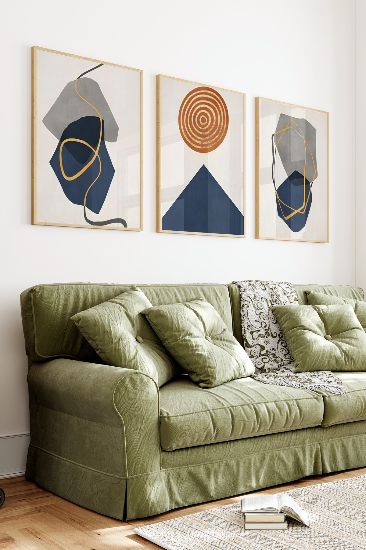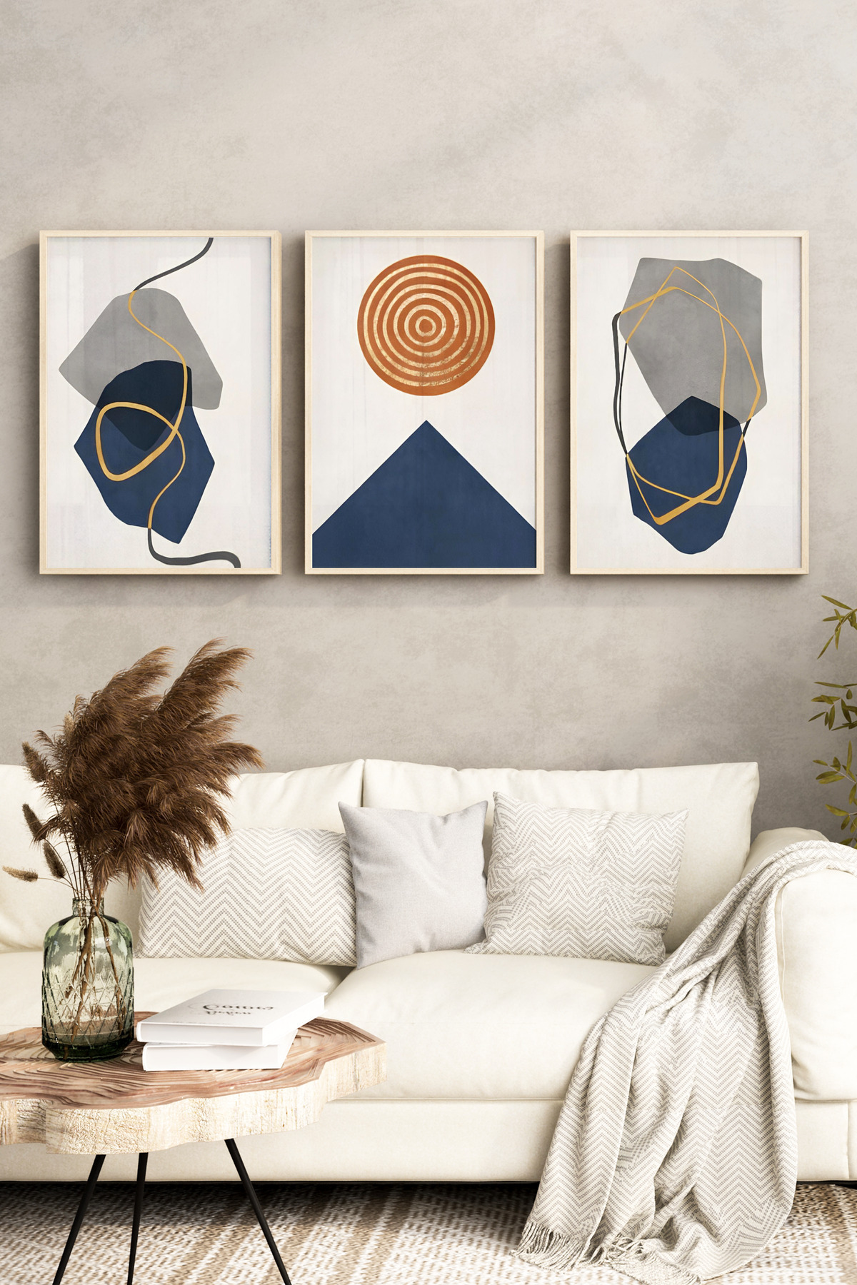 🌟 Geometrik Formlarda Soyut Sanat: 3'lü Ahşap Çerçeveli Tablo Seti 🌟🌿 CRV1141
