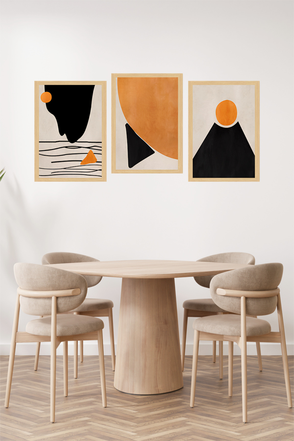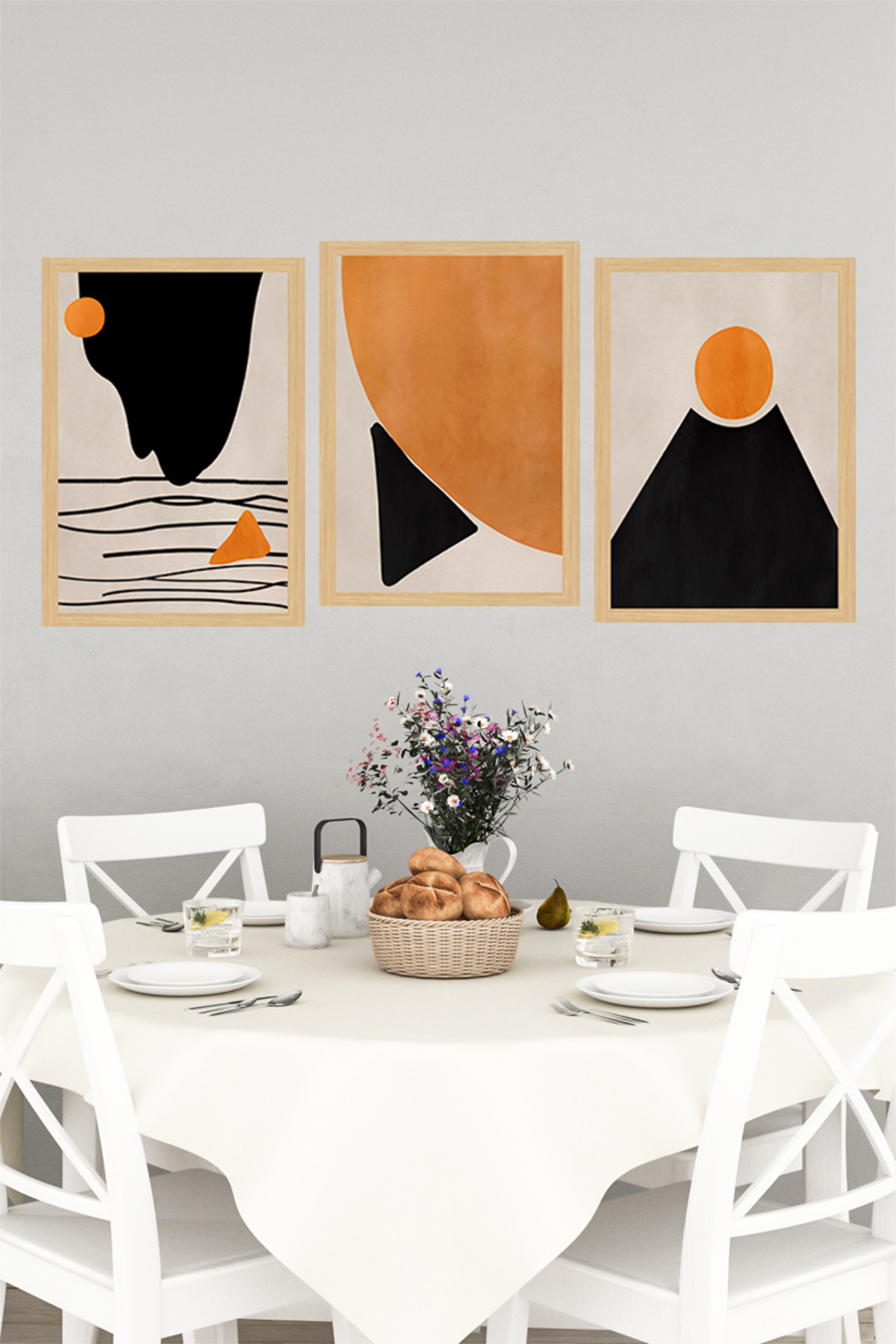 🟧 Geometrik Soyut Sanat Desenli 3’lü Çerçeve Görünümlü Tablo Seti🌟 CRVS1146