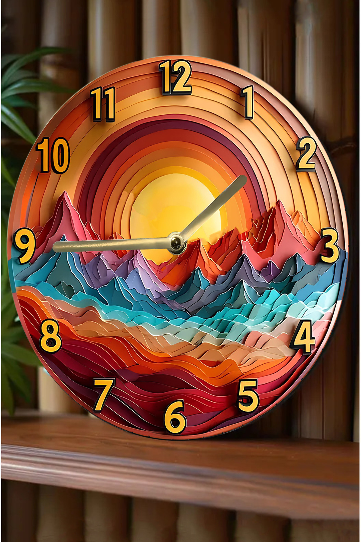 🏞️ Gün Batımı Dağları - 3D Görünümlü MDF Duvar Saati (33 cm) sdw295